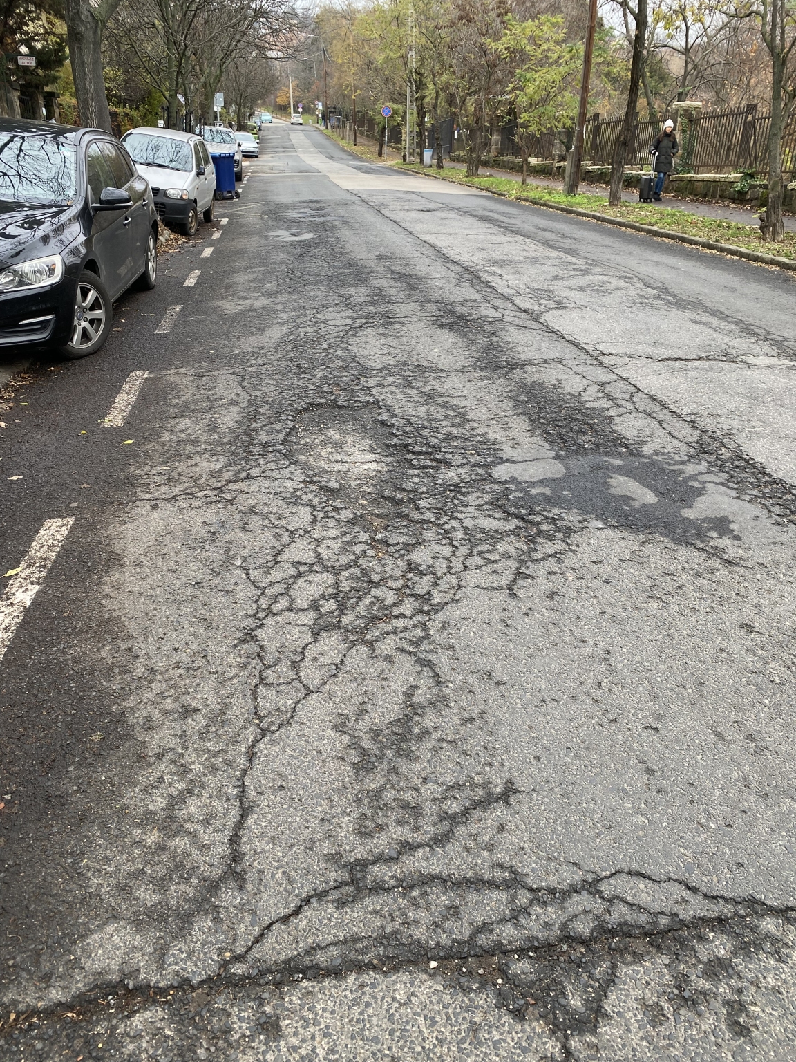 Buszok is járnak rajta, kollégium is van az utcában, mellesleg Buda egyik, elit környékén vagyunk.