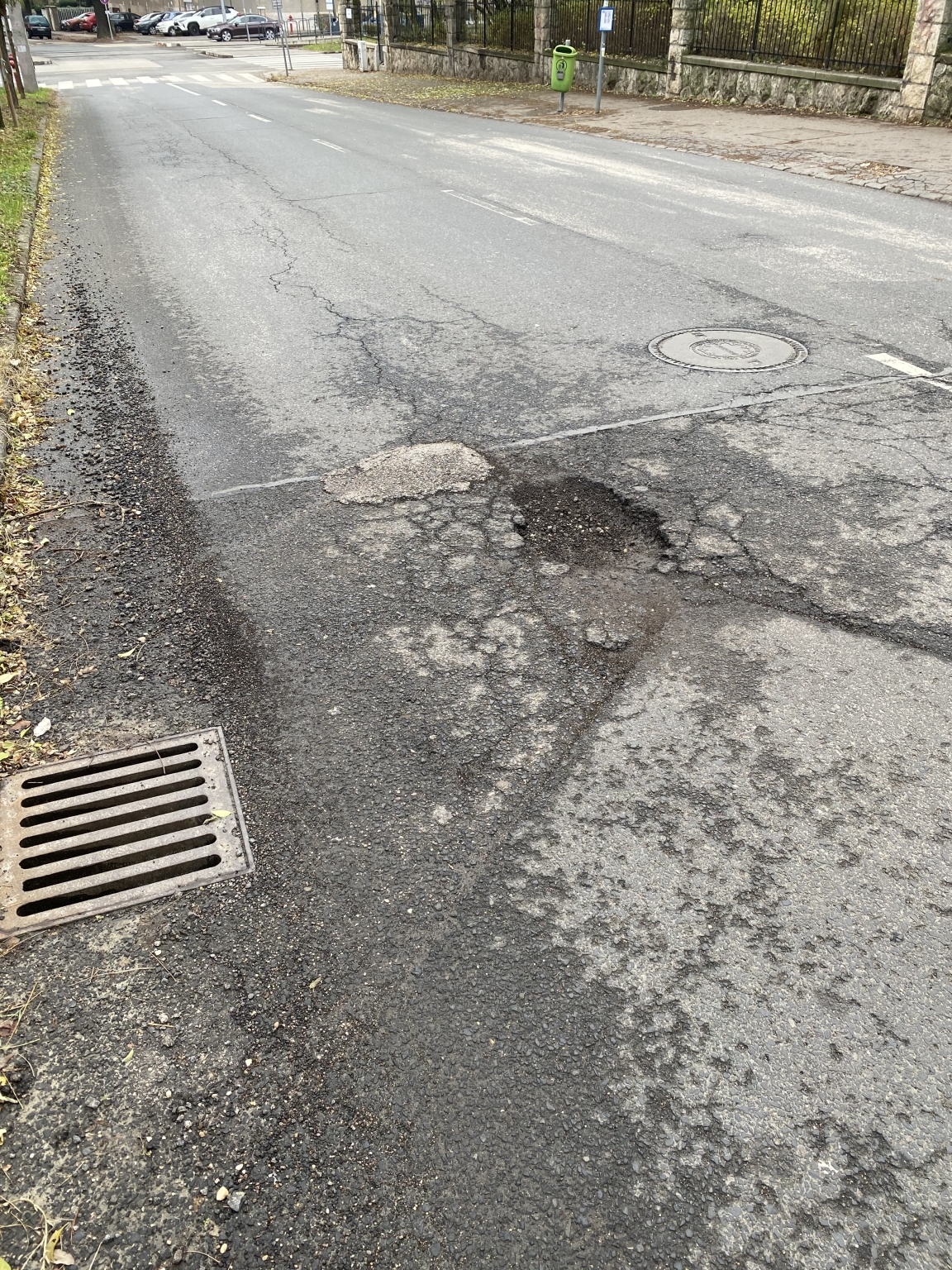 A képek magukért beszélnek, de gondolom a bejelentést olvasók közül legalább egy ember már elgurult rajta autóval, tudja milyen amikor itt kell 15-20-al végigzötykölődni az aknákat kerülgetve.
