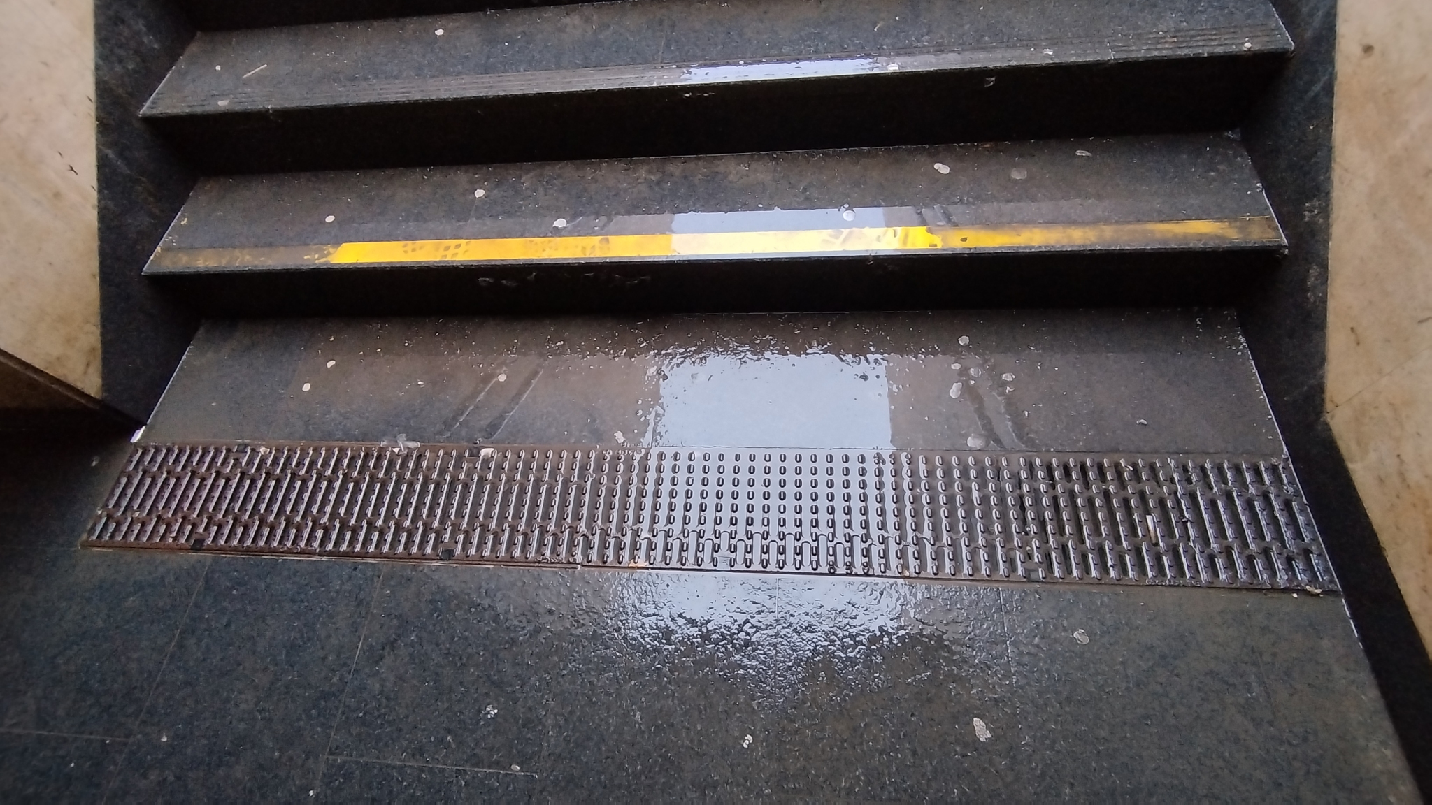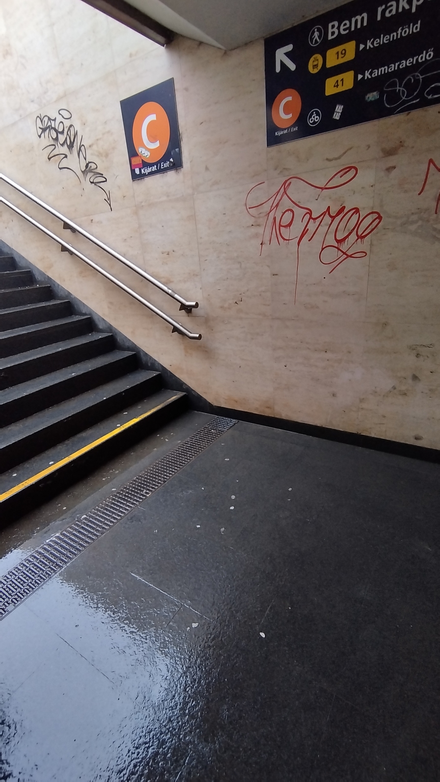 A térképen jelzett helyen az aluljáró-szint és a felszín között félúton a nyugati irányban lévő vízelvezető árok már nem folyik le (eldugult), de a keleti irányban lévő is tisztításra szorul.