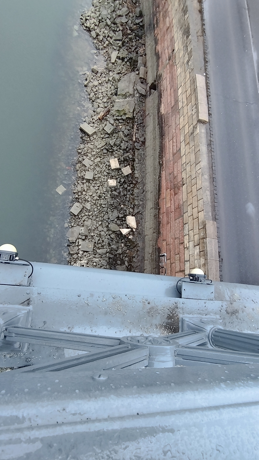 Kérem a mellvéd megerősítését további lepotyogás ellen, kérem a már lepotyogott kövek visszatételét, a mellvéd helyreállítását.