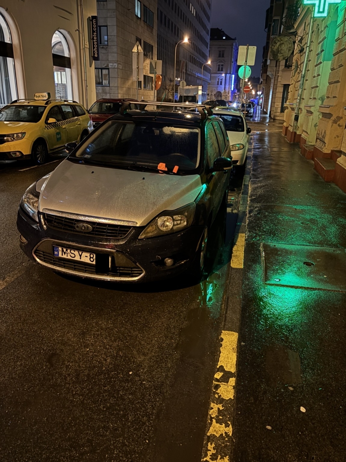 Budapest VII. ker. Dob utca 80. szám előtt kb. 2025. december eleje óta elhagyottan áll a képen látható személyautó. Kerületi parkolási engedéllyel feltételezhetően nem rendelkezik, több parkolási bírság megtalálható rajta.