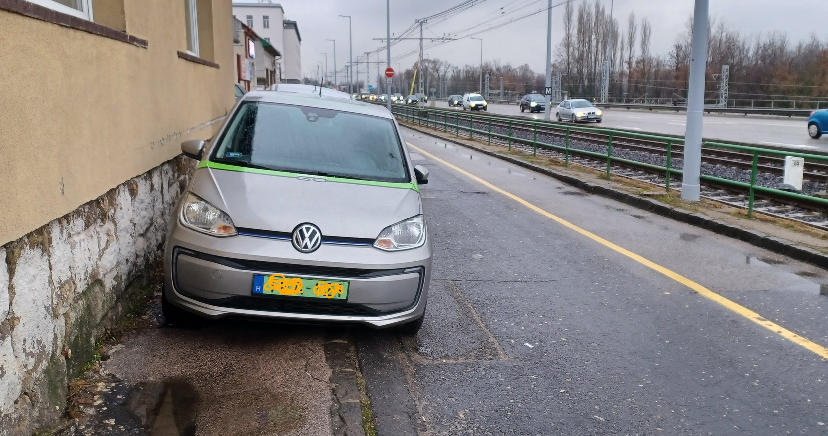 A járdát teljes szélességében elfoglalják a parkoló autók.