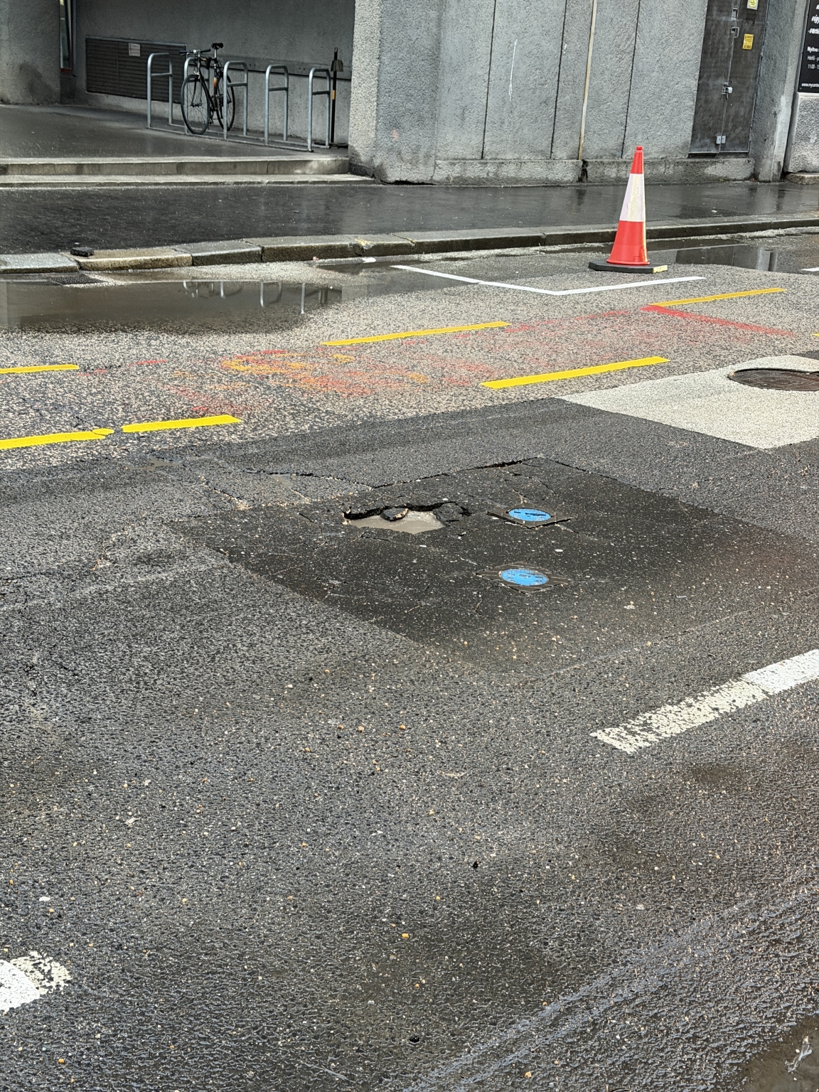 Mély kátyú és betondarabok mindenhol