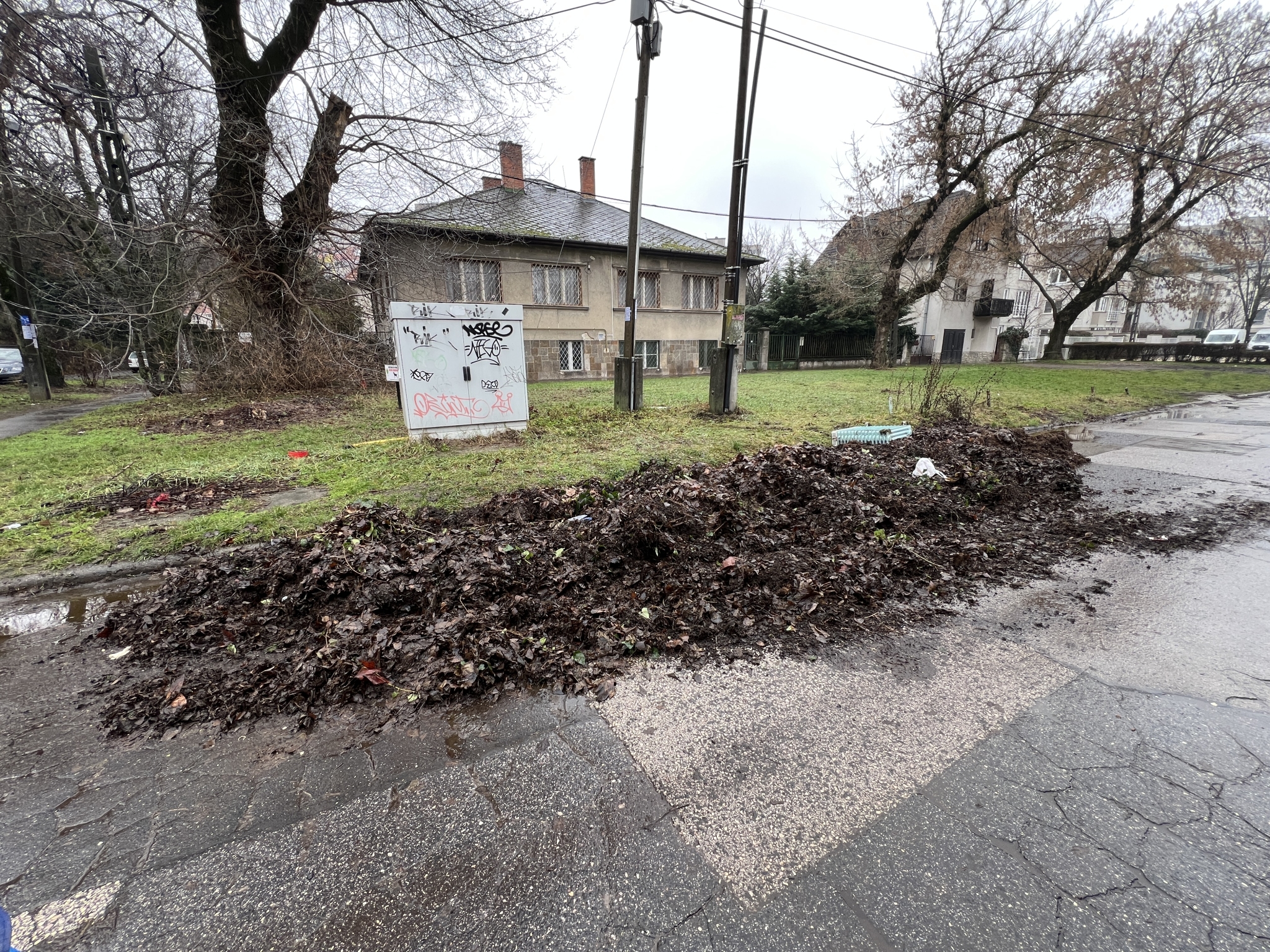 Földdel kevert avar az úton