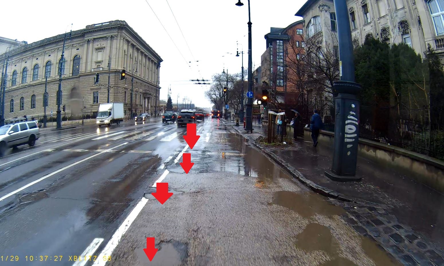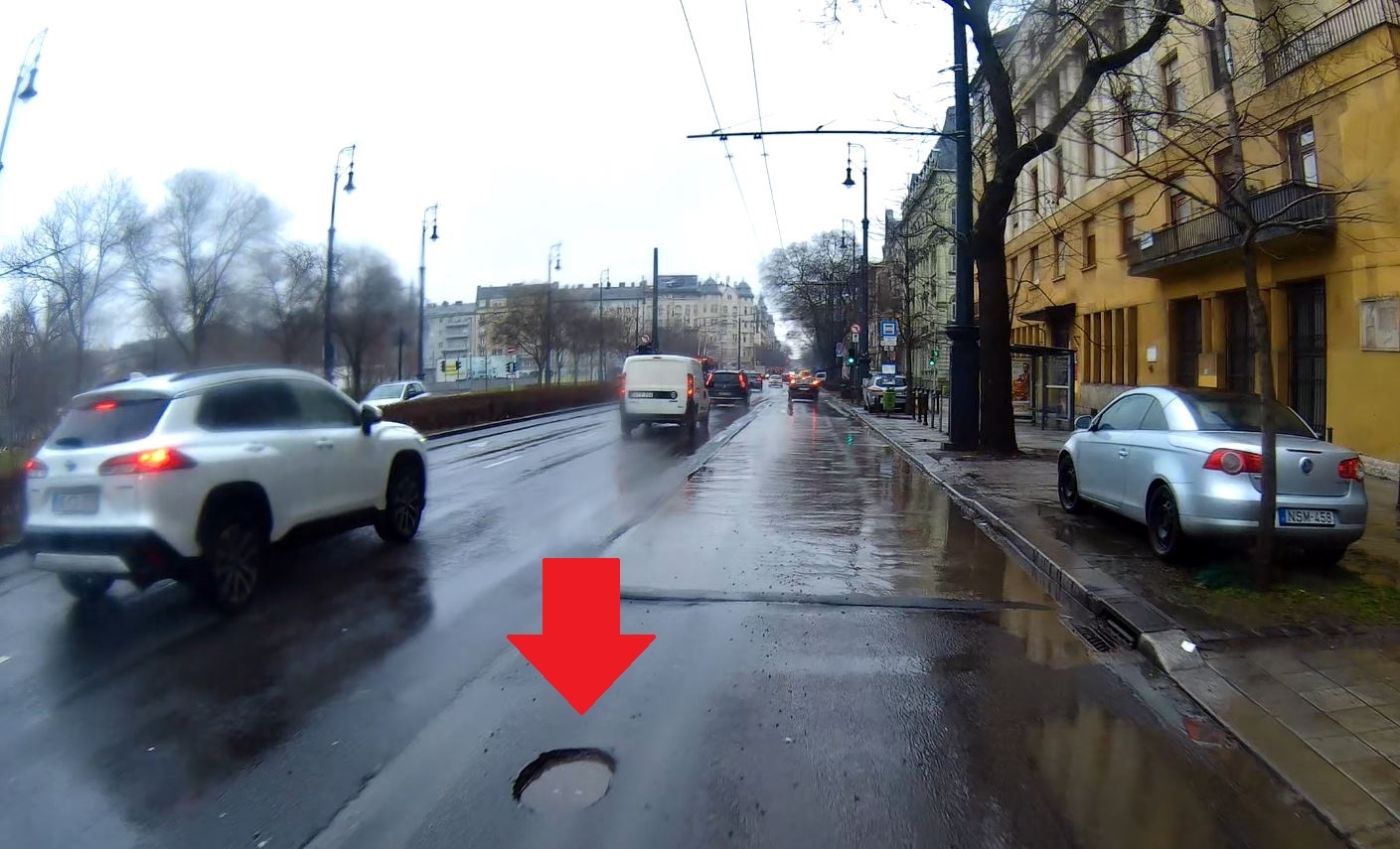 Hátha segít, hogy kiválogattam a legmélyebb, legnehezebb kerülhető kátyúkat a Dózsa György út páros (rossz minőségű) oldalán a busznyomvonalban - Podmaniczky kereszttől a Dembinszky keresztig - EZ A HORROR-RÉSZ.