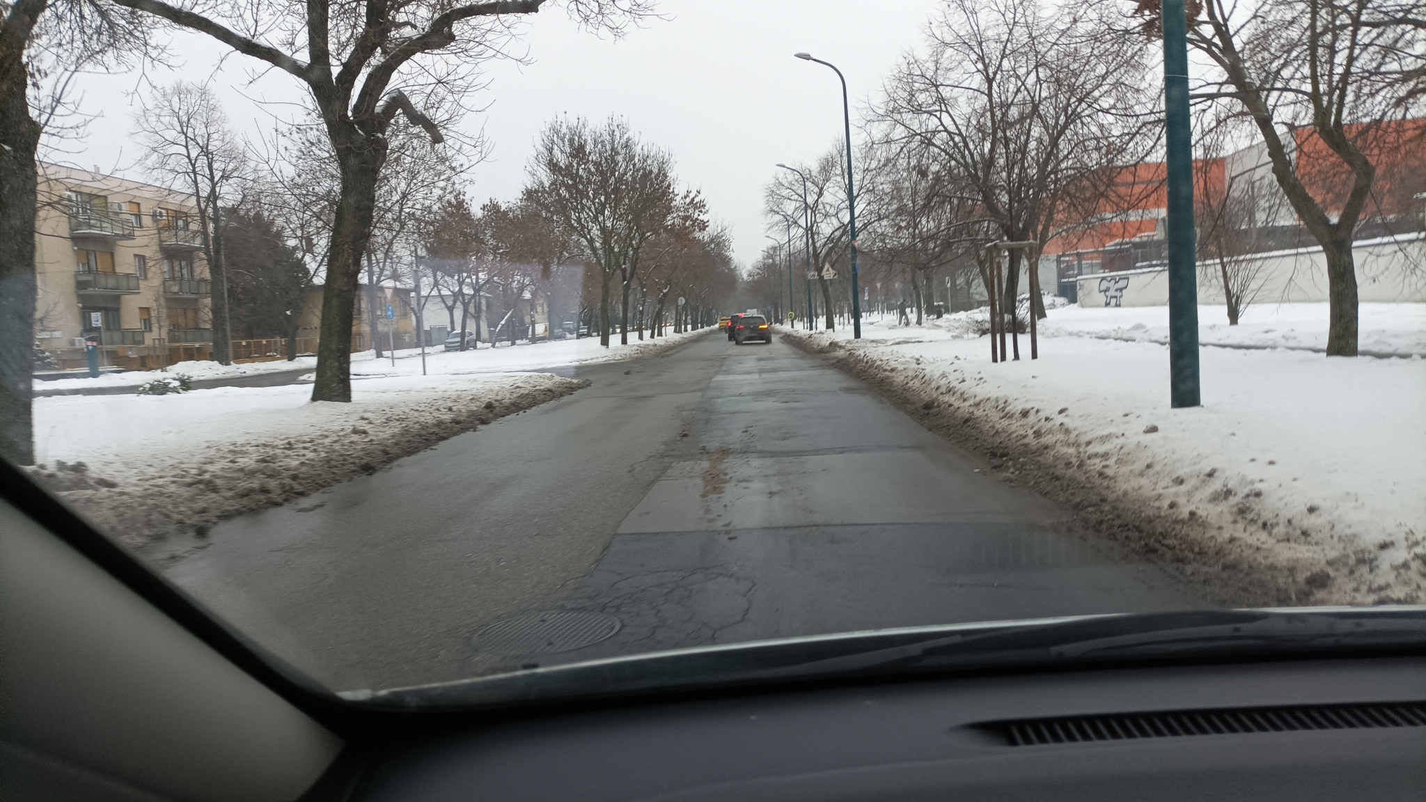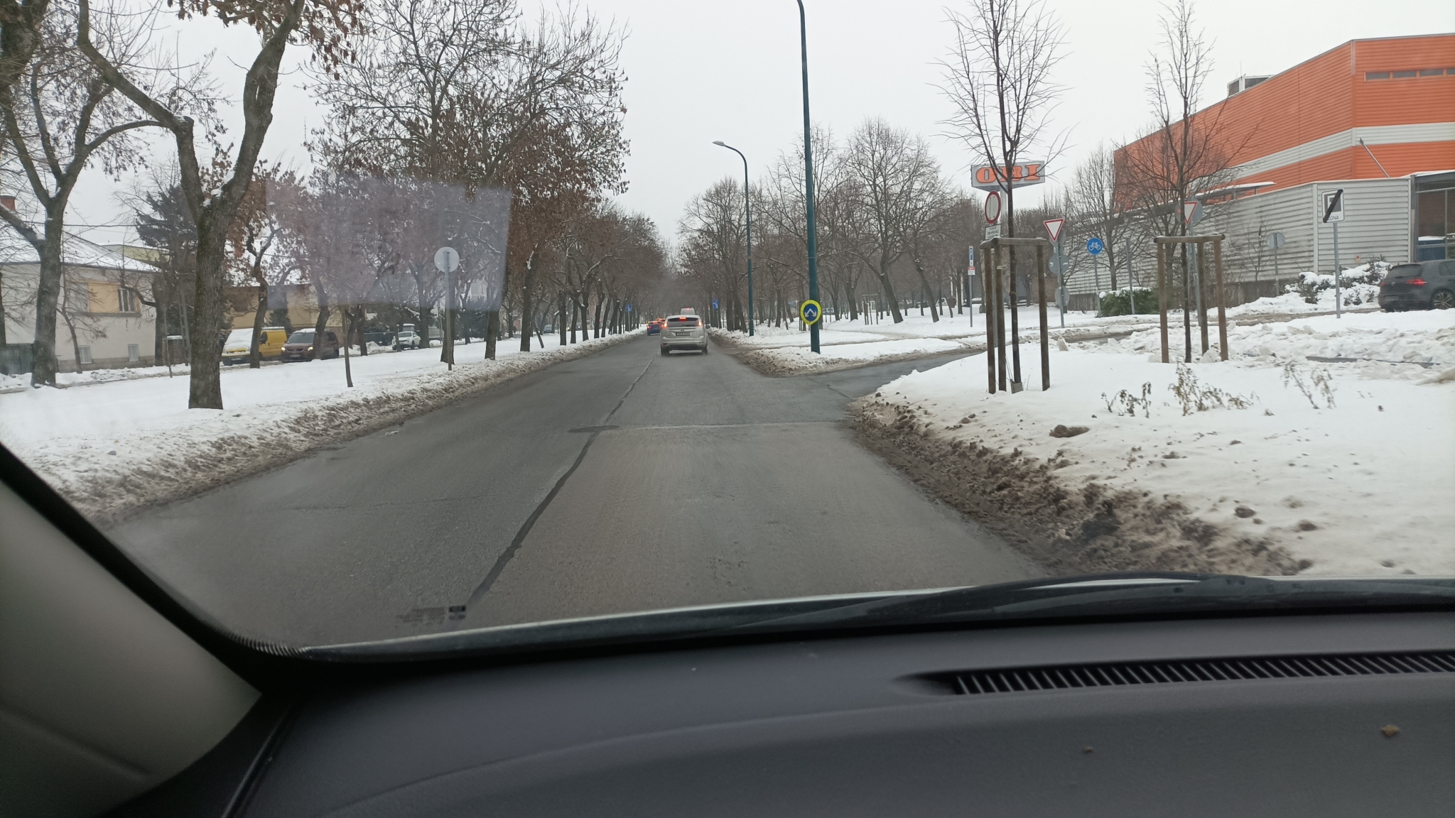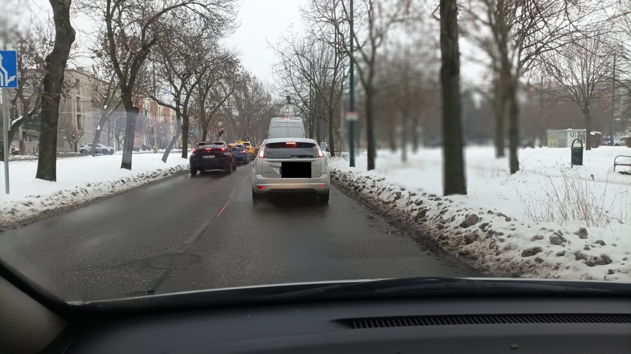 A képek télen készültek, amikor még nincs is lomb a fákon és még akkor sem látható rendesen a lámpa, csak utolsó percben. Jó lenne, középre, fönt is szerelni lámpákat - egyet a balra kanyarodóknak, egyet a tovább haladóknak- , hogy távolabbról is észlelhető legyen az éppen aktuális helyzet. A képeket sorban raktam fel, ahogy közeledett a kocsi a Fogarasi út felé. Nyáron még rosszabb a helyzet.