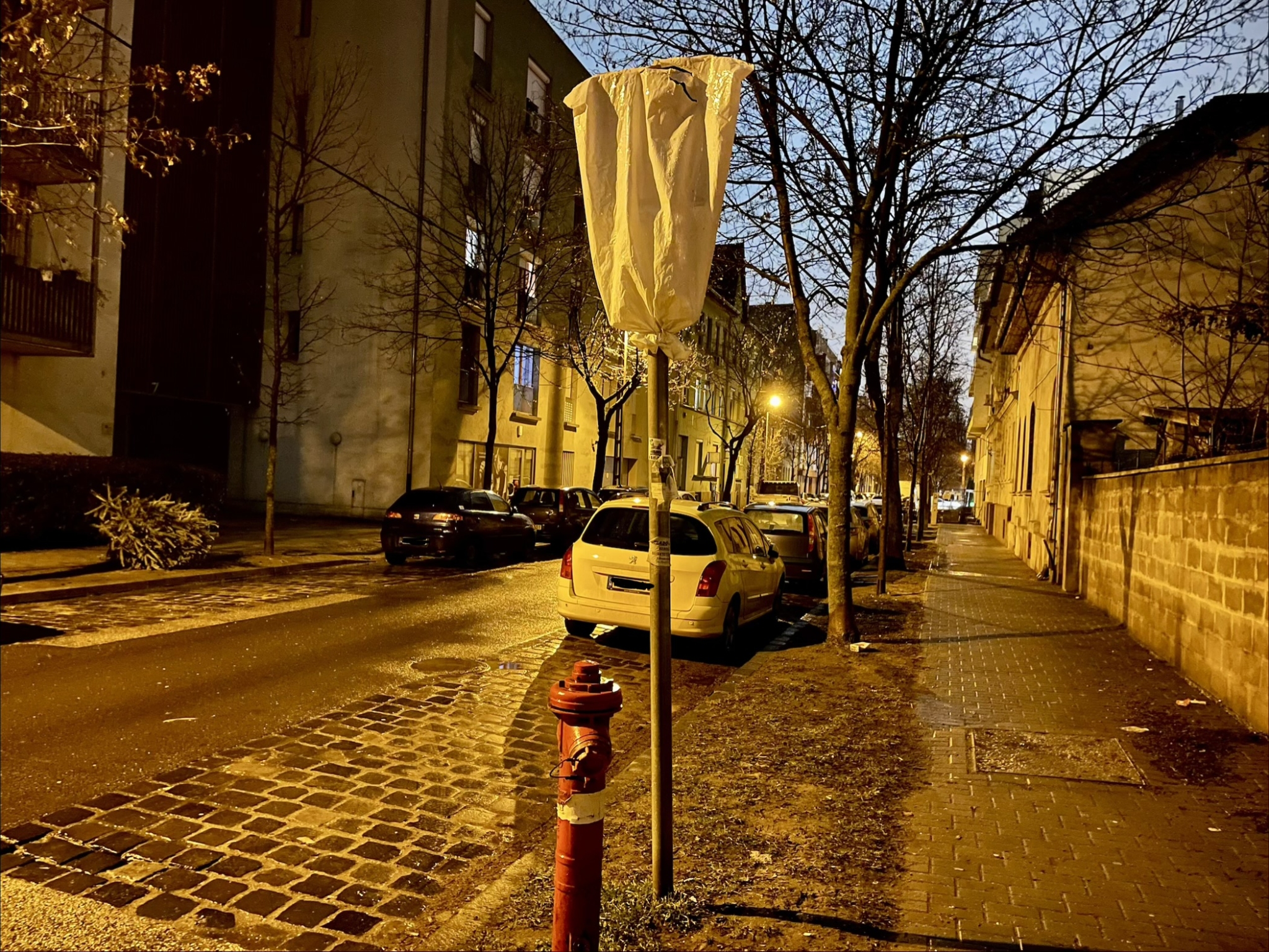 A XIII. ker. Jász utcában a Frangepán utca kereszteződése után a tavalyi lezárást követően, az eredeti forgalmi rend visszaállításakor elfelejtették levenni a KRESZ táblákról a takaró fóliát, amely azóta is így áll.