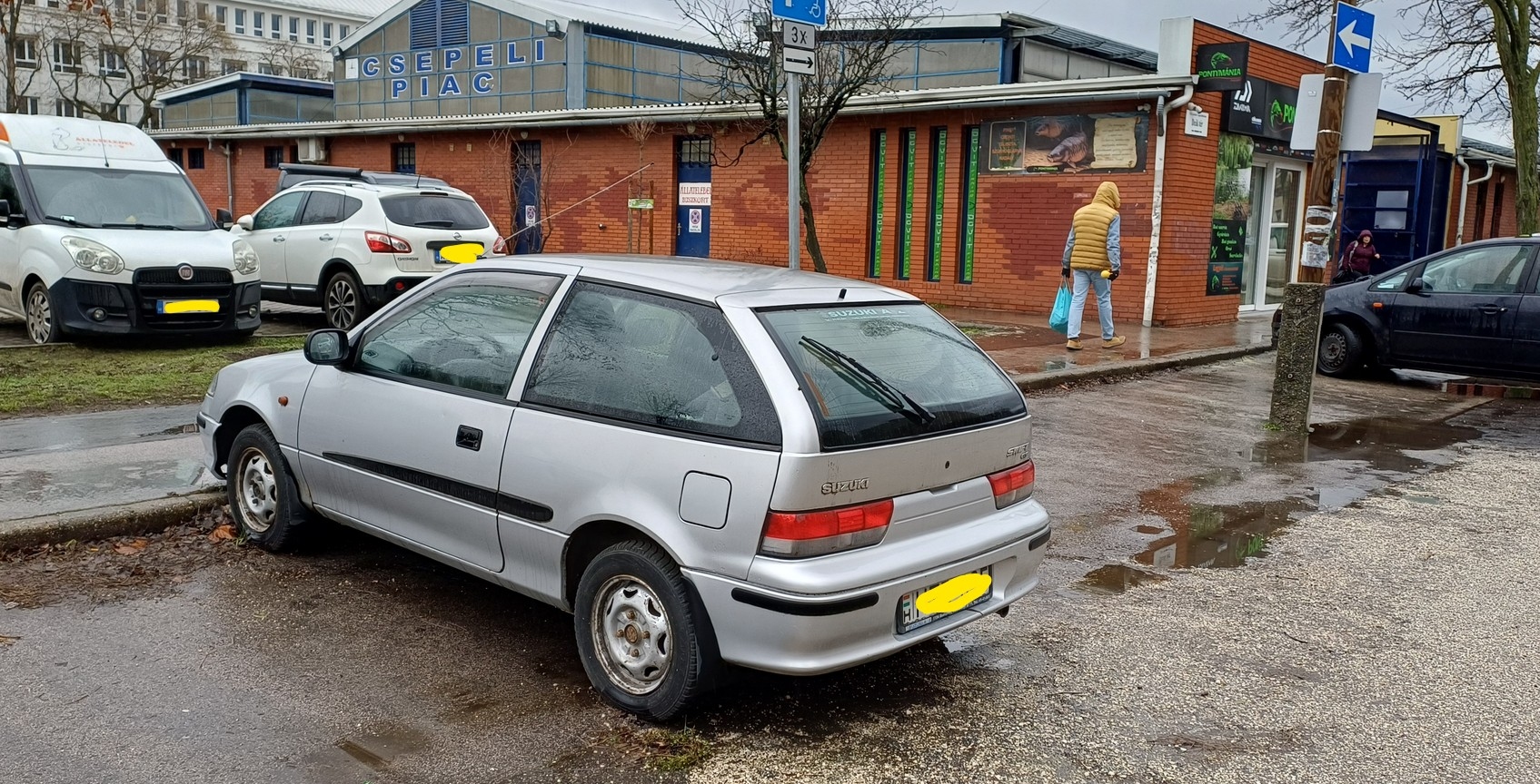A csepeli piac parkolójában, lejárt ezüst Suzuki.