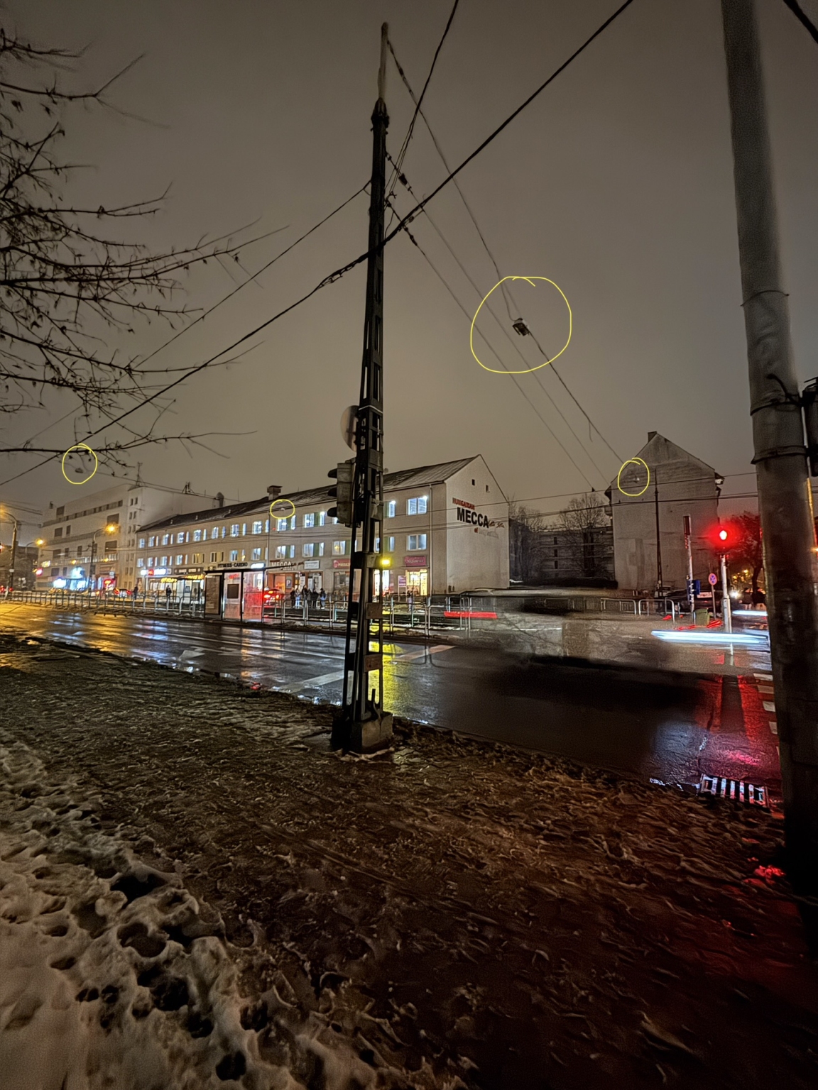 Frangepán utca és a Béke utca kereszteződésben és a villamos megálló feletti közvilágítás nem működik.