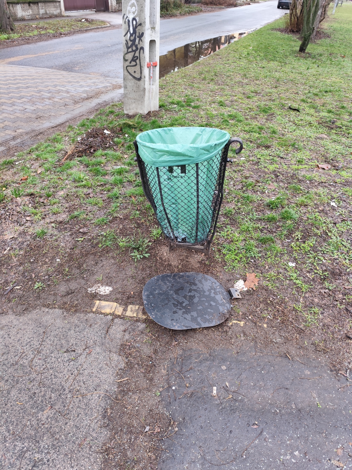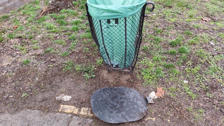 A szemét gyűjtő teteje leesett.