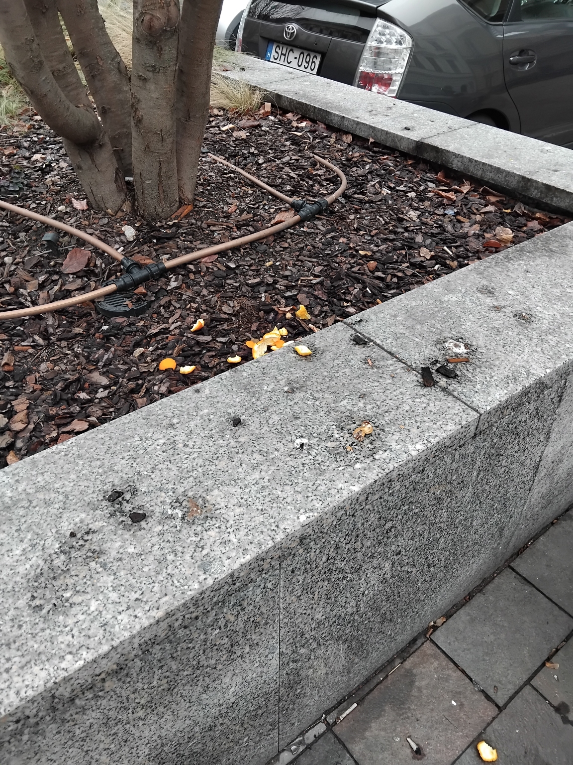 Szemeteszsák, csikkek, mandarin, csokipapír, minden egyéb. Az összes ágyásban, nemcsak ezekben.