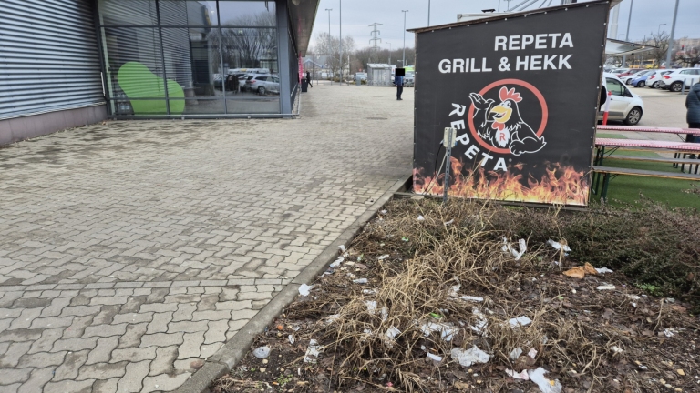 A képen látható járdasziget a mömax és a LIDL között kamionbeállónál található a grillcsirkés mellett.