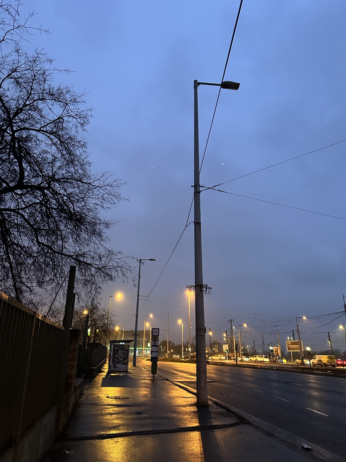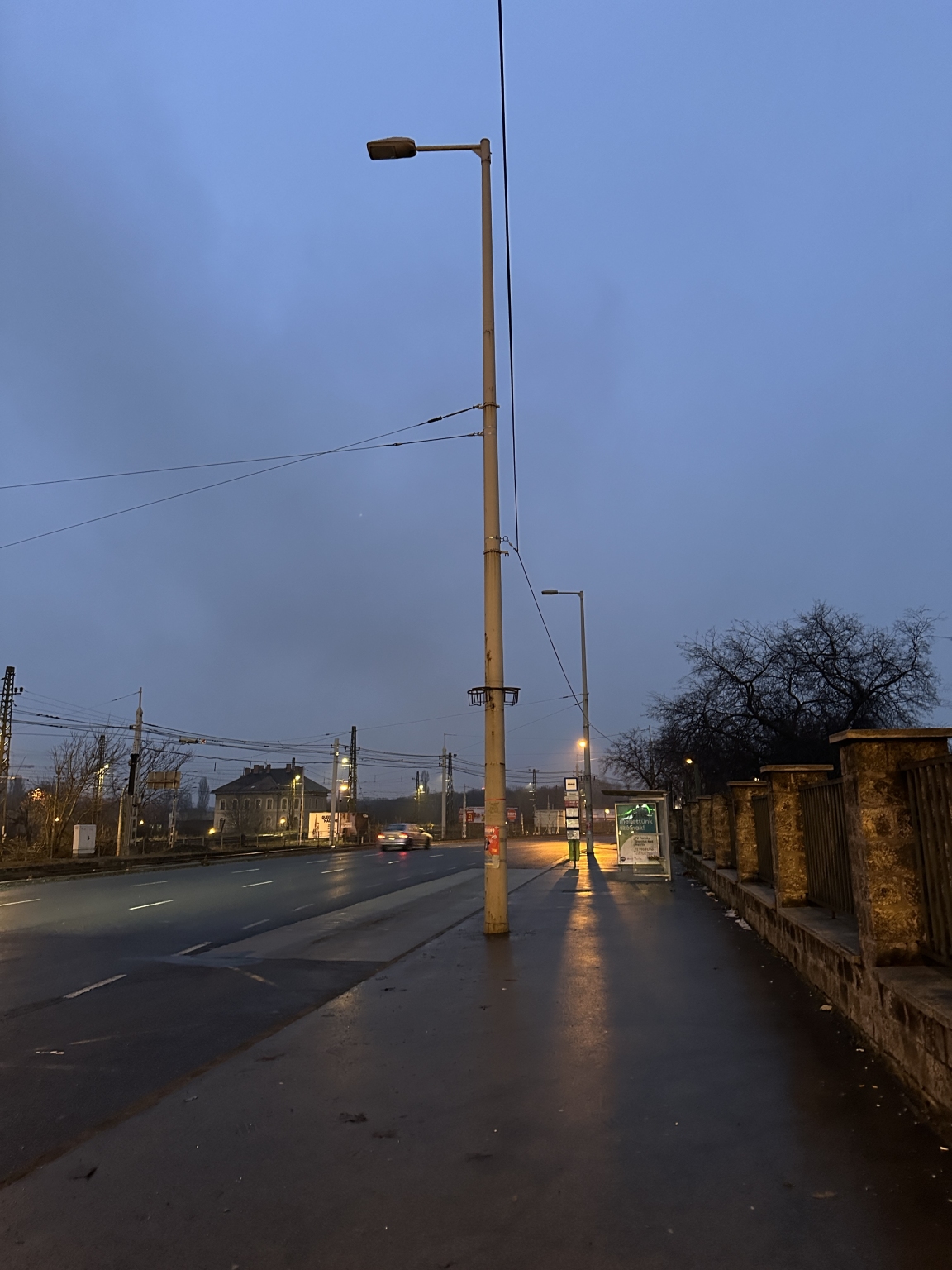 Buszmegállónál, kanyarban, forgalmas útszakaszon 2 db villanyoszlop meghibásodott. ‘Nem világít’