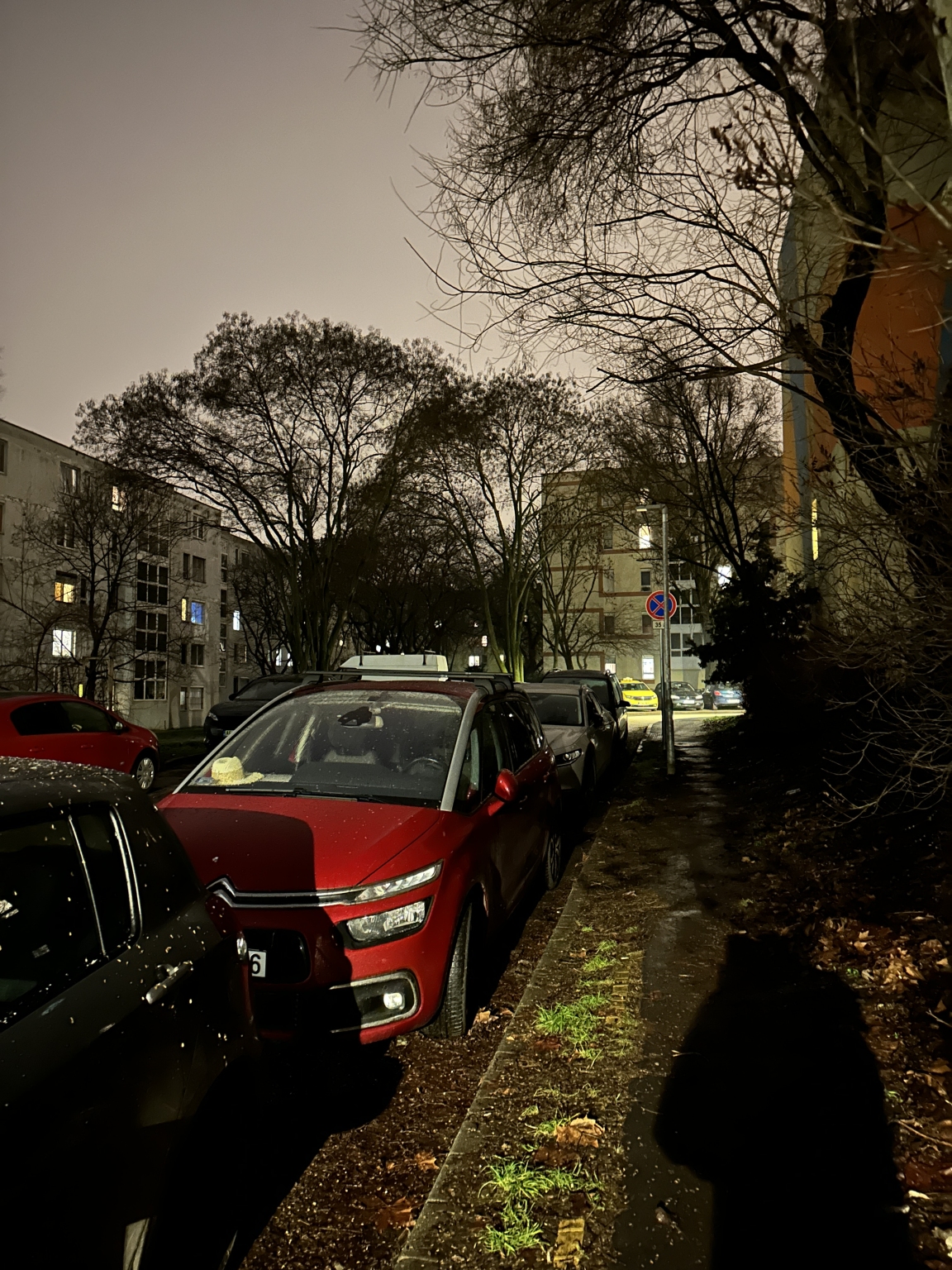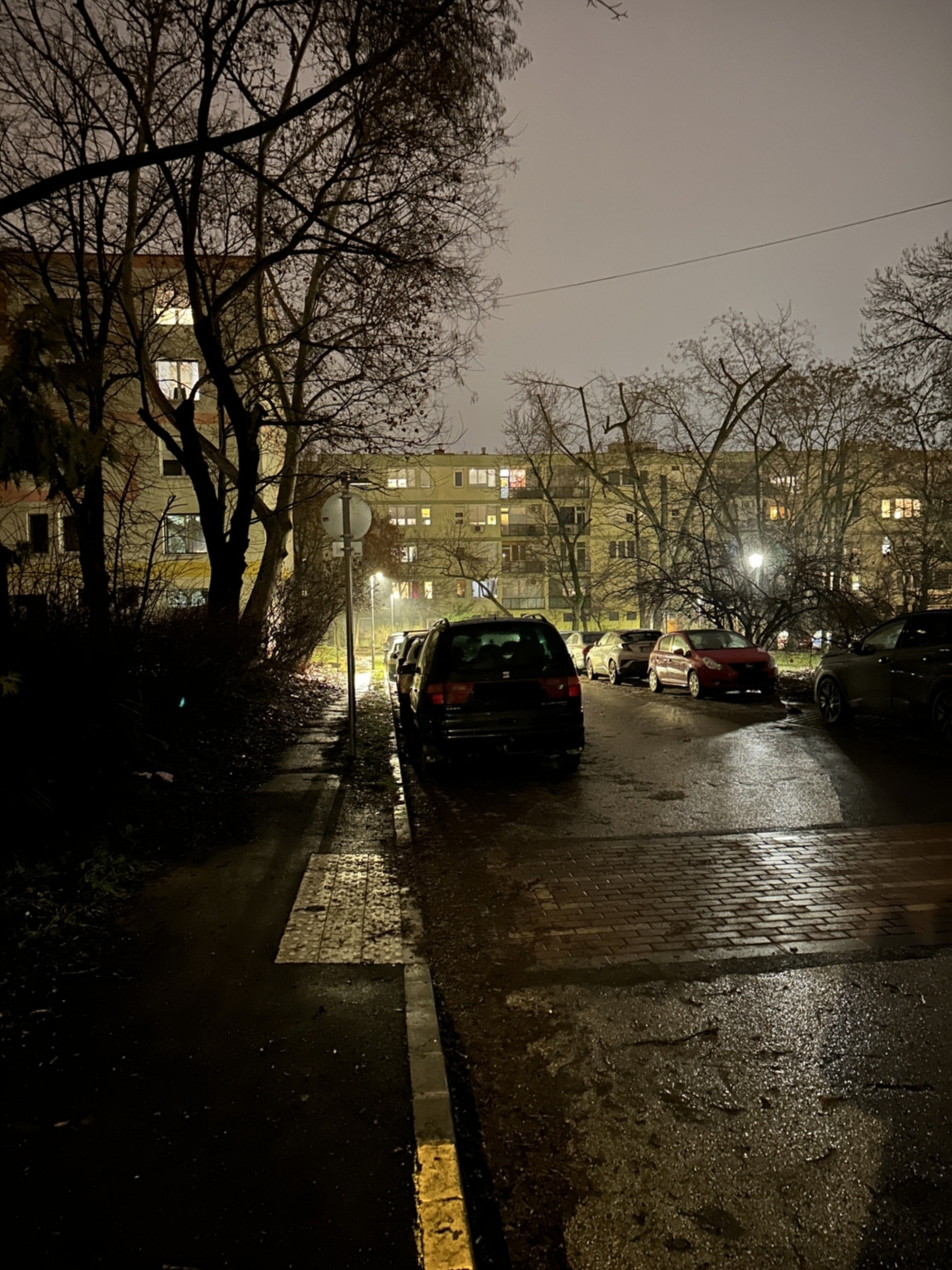 Fák, bokrok, épületek miatt alapból sötétebb járdaszakasznál hibás a villanyoszlop.