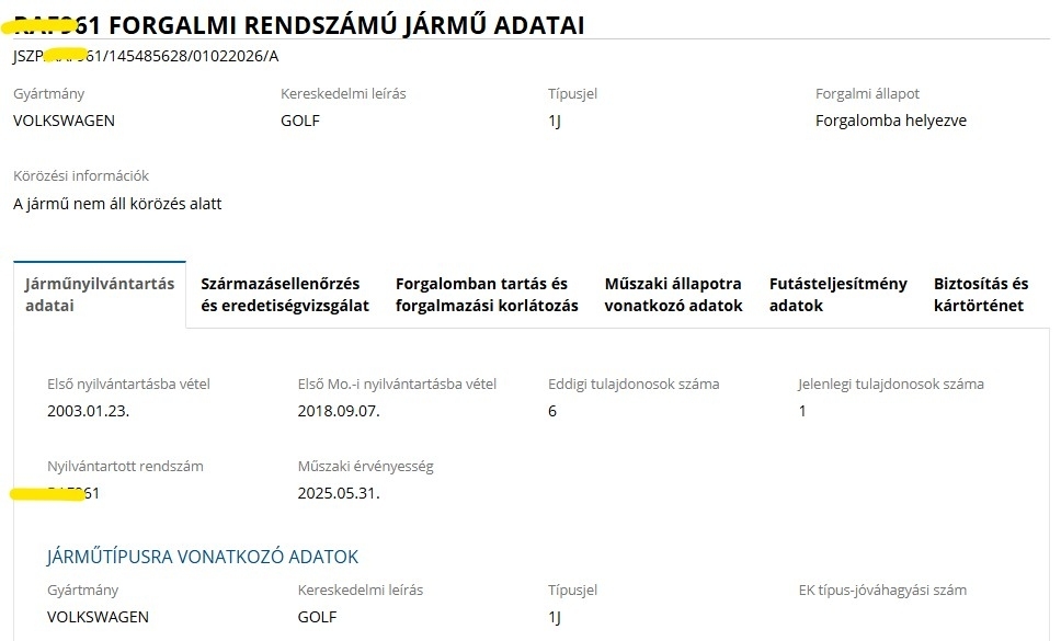 Lejárt Volkswagen a pesterzsébeti Tinódi utcában.