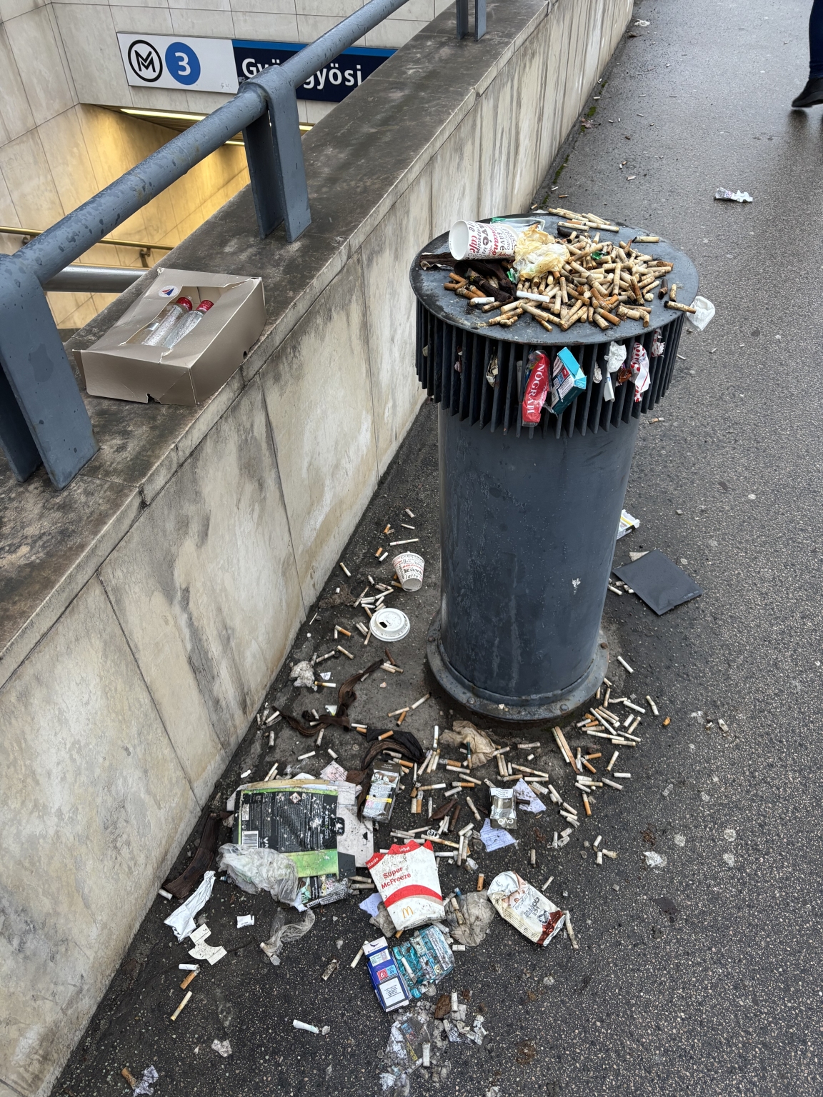 A látott probléma az, hogy a Gyöngyösi utcánál található metrómegállónál lássak hetek óta el vannak dobálva a cigaretta csikkek, és körülötte szemét is megtalálható.