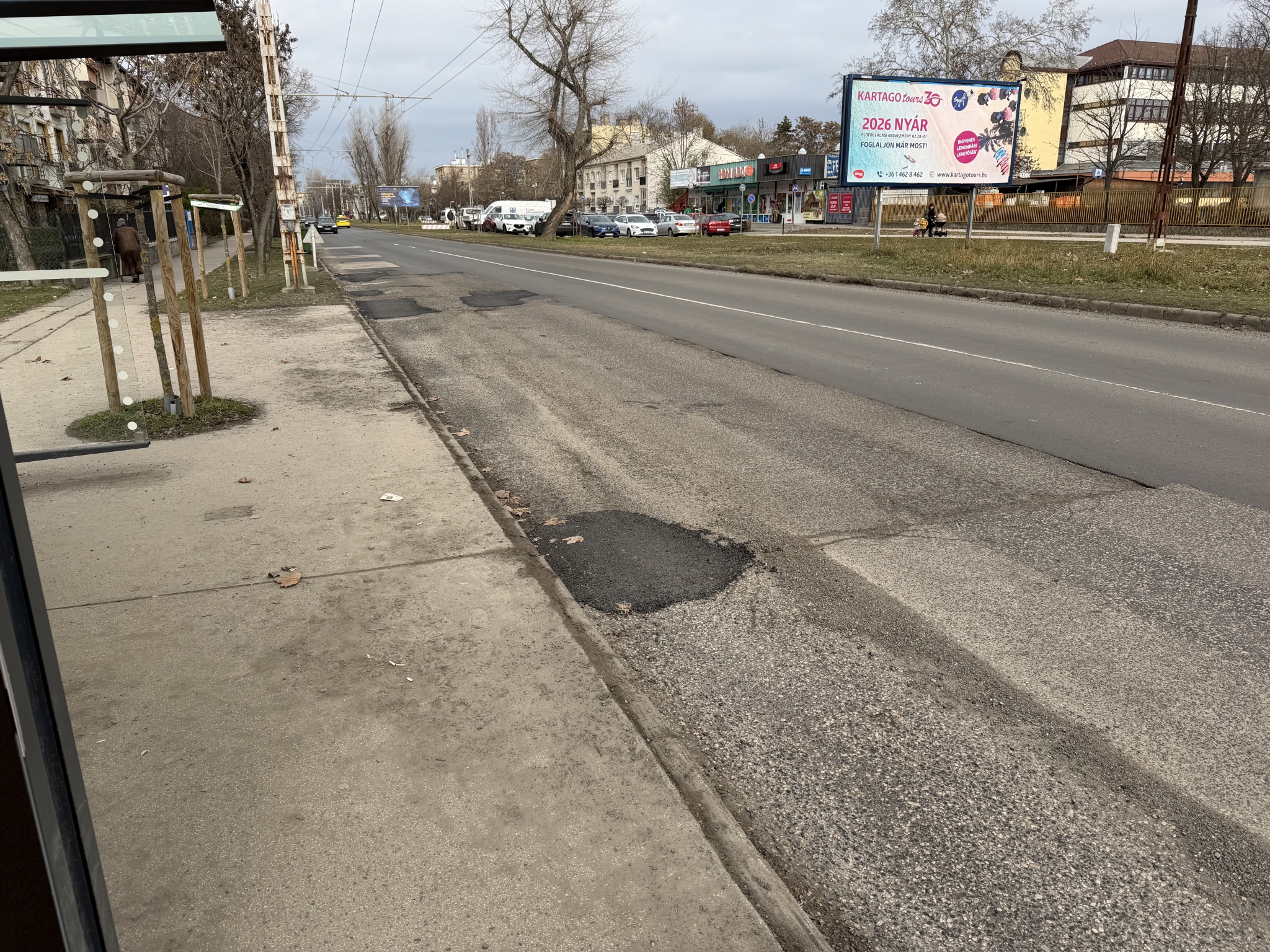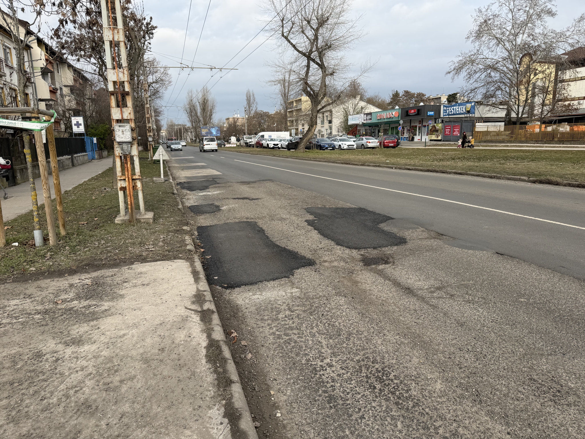 Mogyoródi út nevű 82-es troli megállója a Fogarasi út irányába jó ideje rossz, de most már minősíthetetlen kategória. Az illetékes ha korábban megcsinálja nincs a mostani állapot. Legyenek kedvesek kicserélni a romos burkolatot. Köszönöm!