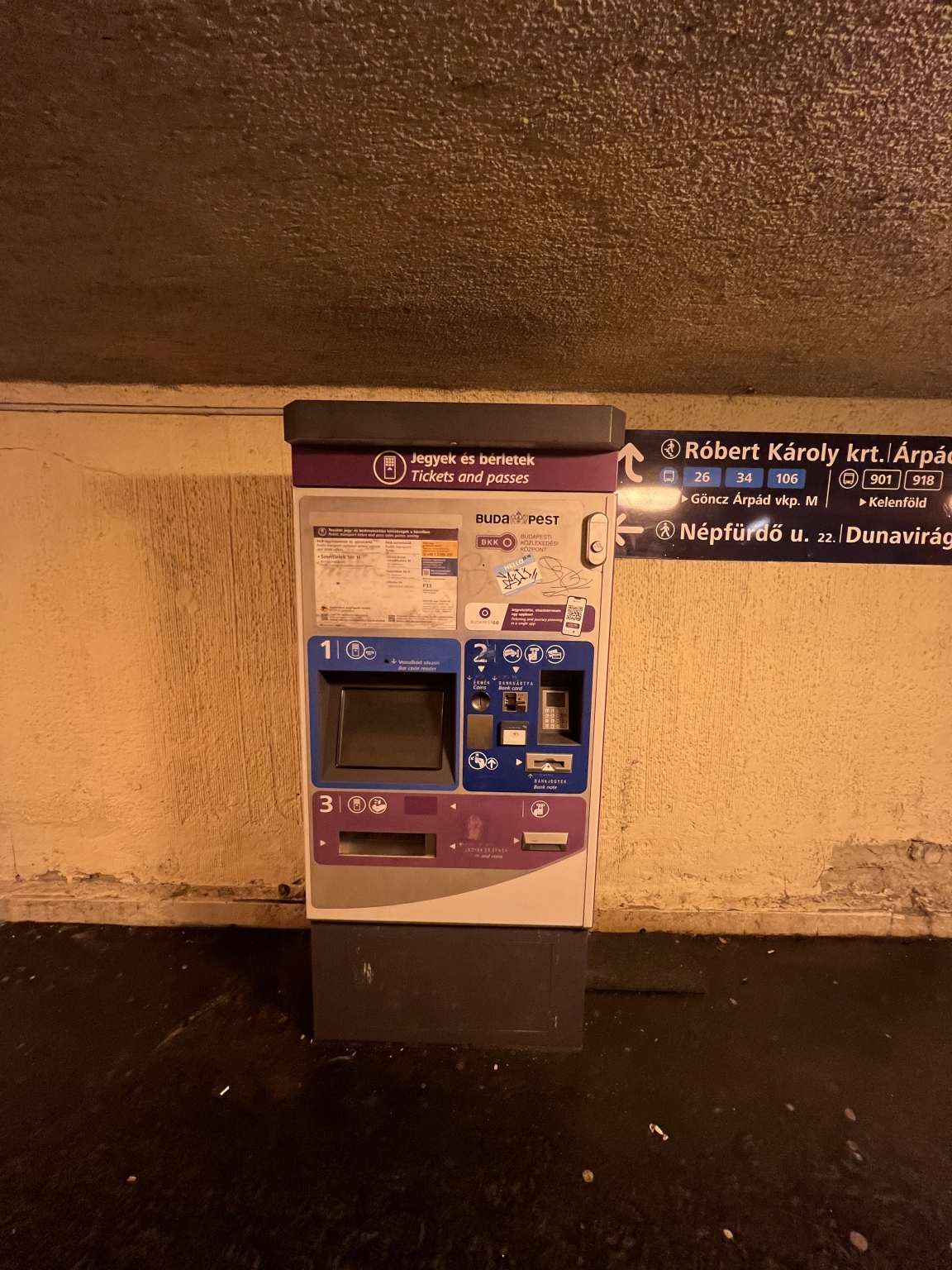 BKK jegy automata Népfürdő u / Árpád híd villamos megálló utcai szint