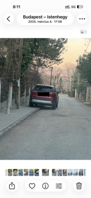 12. kerület Matyó utca - az utca egyik oldalán van csak járda, ami elég keskeny, tábla nem engedélyezi a parkolást, mégis az autók folyamatosan a járdán - akár azt teljesen elfoglalva - parkolnak, a gyalogosok az úttestre kényszerülnek egy részben az erre az utcára kanyarodó járművek által nem 100%-osan belátható szakaszon is.