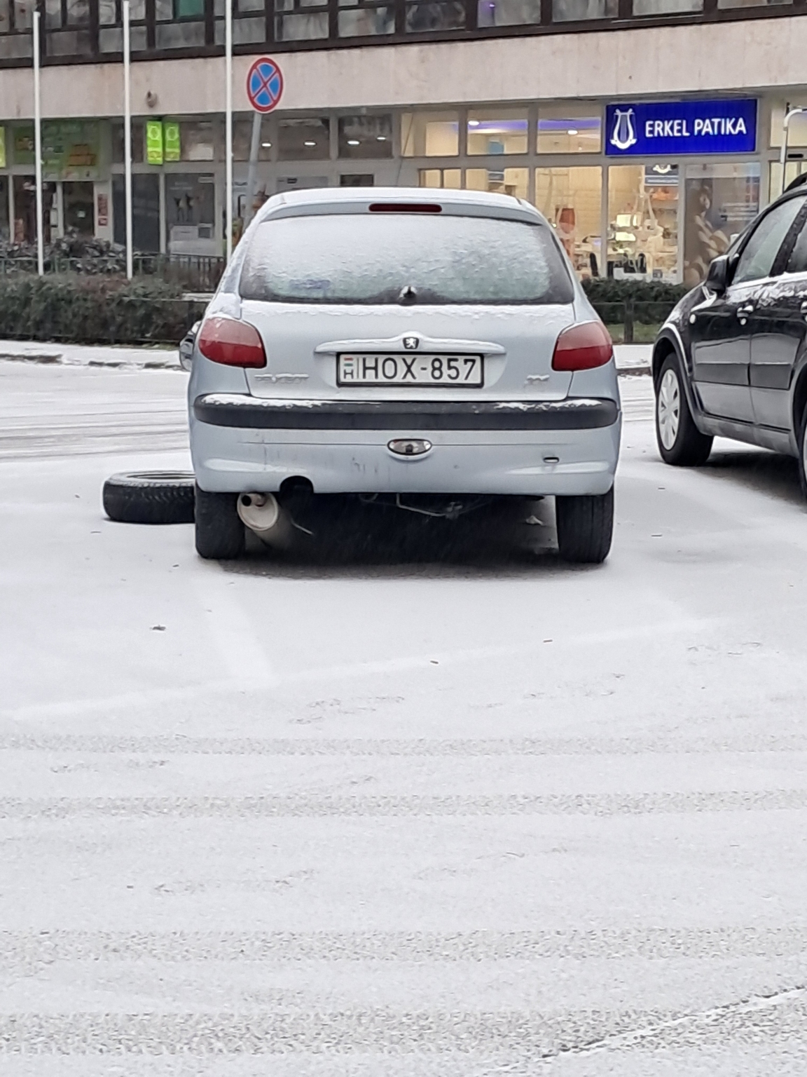 Több hónapja áll egy autó (HOX857 kék Peugeot 206) az Erkel színgáz előtti parkolóban, melyen már mindenféle büntetési papír van, de elszállítva még nem lett.