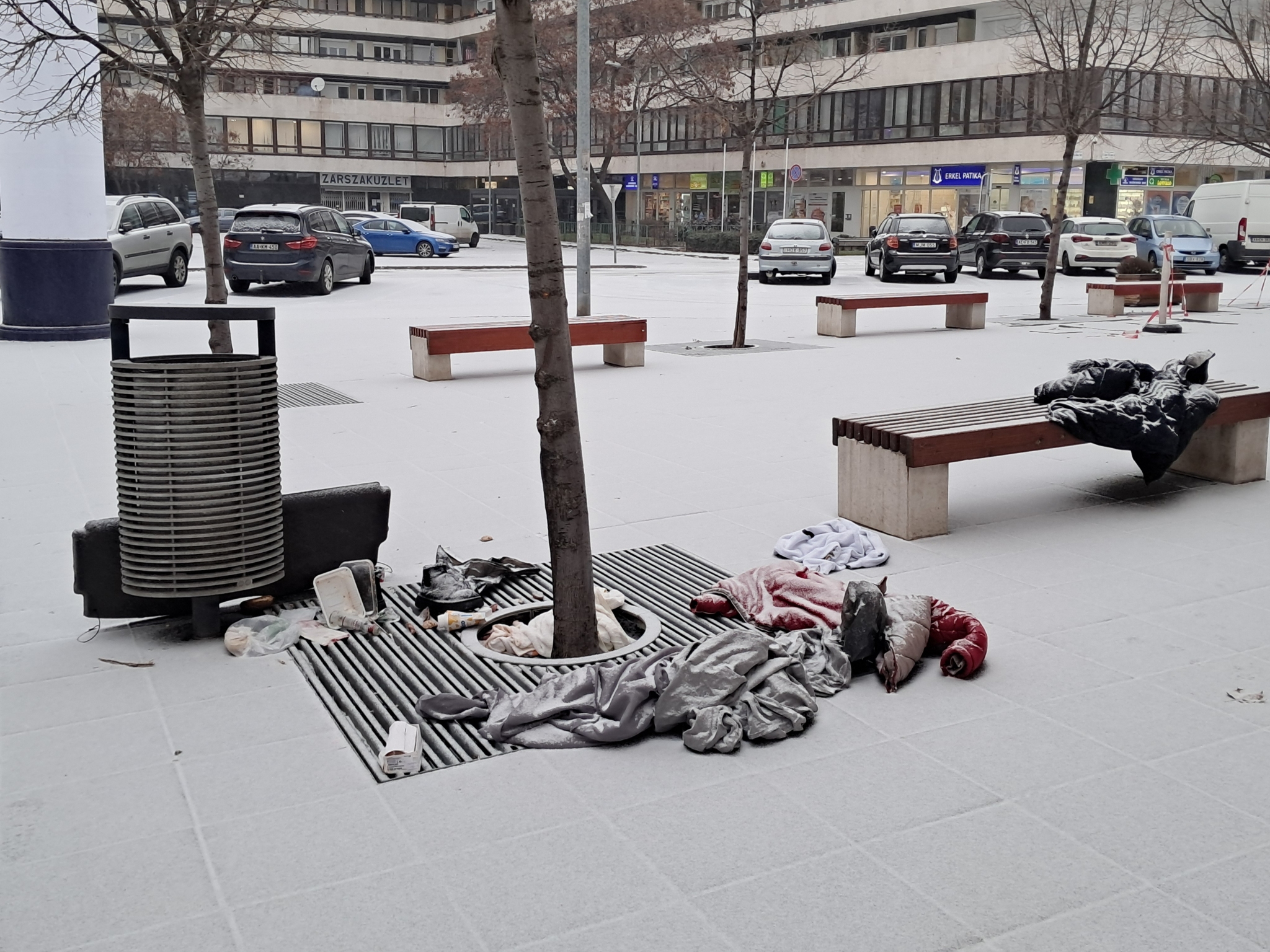 A napokban aludtak is benne (régebben is) és ma reggelre a szomszédos kuka és melléke tele lett pakolva szeméttel, ami valószínűleg az autóból származik. (lsd kalaptartó)
