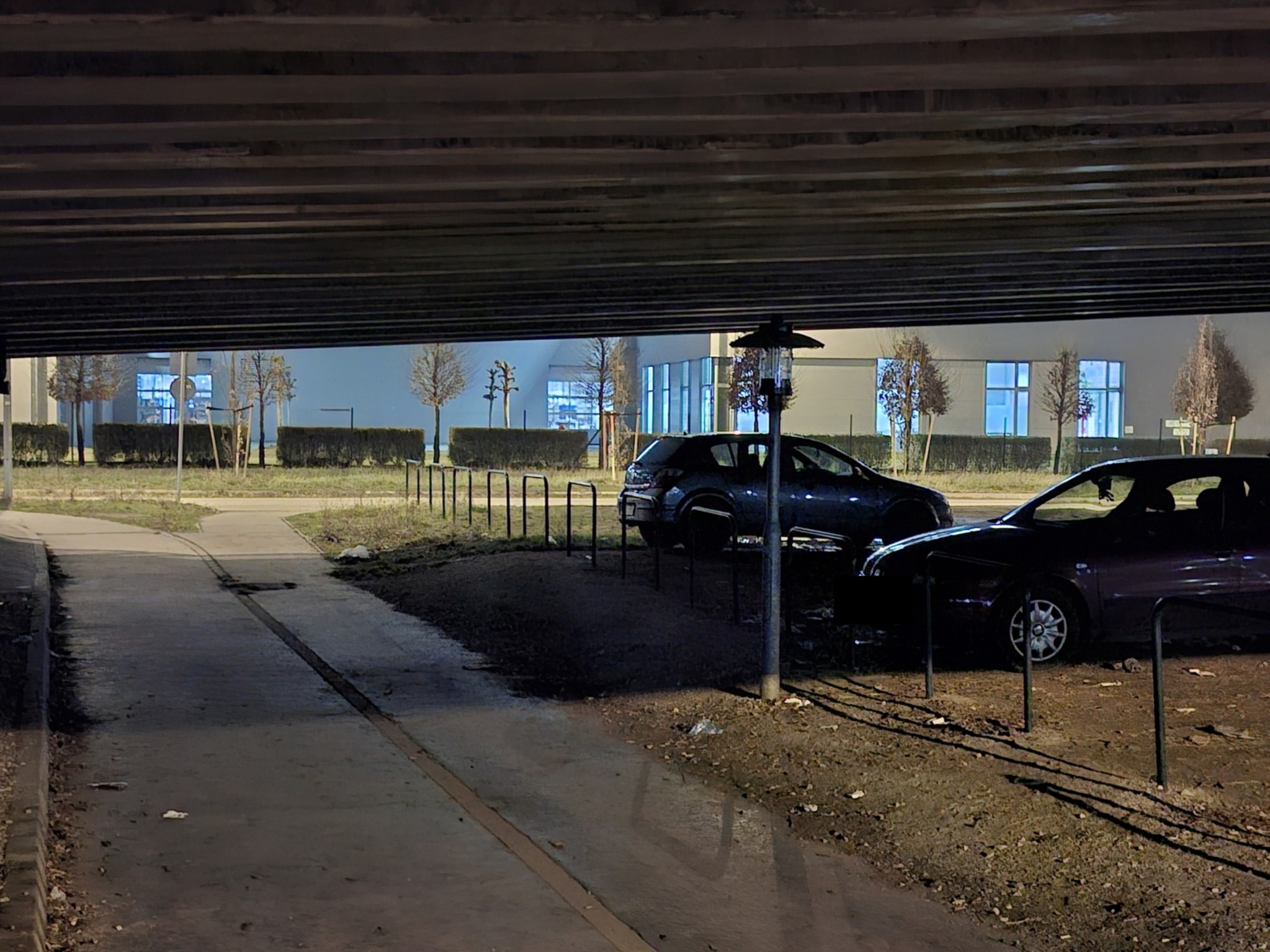 A felüljáró alatti, bicikliút menti lámpa nem világít. Így eléggé sötét van a felüljáró alatt.