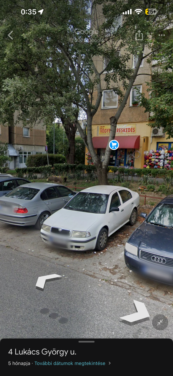 A 1039 Bp Lukacs Gyorgy u 4 elott all egy feher skoda, aminek nincsen rendszama. Mar raktak ra fel eve egy papirt, hogy el fogjak szallitani, de azota sem tortent meg. Parkolo nagyon keves van