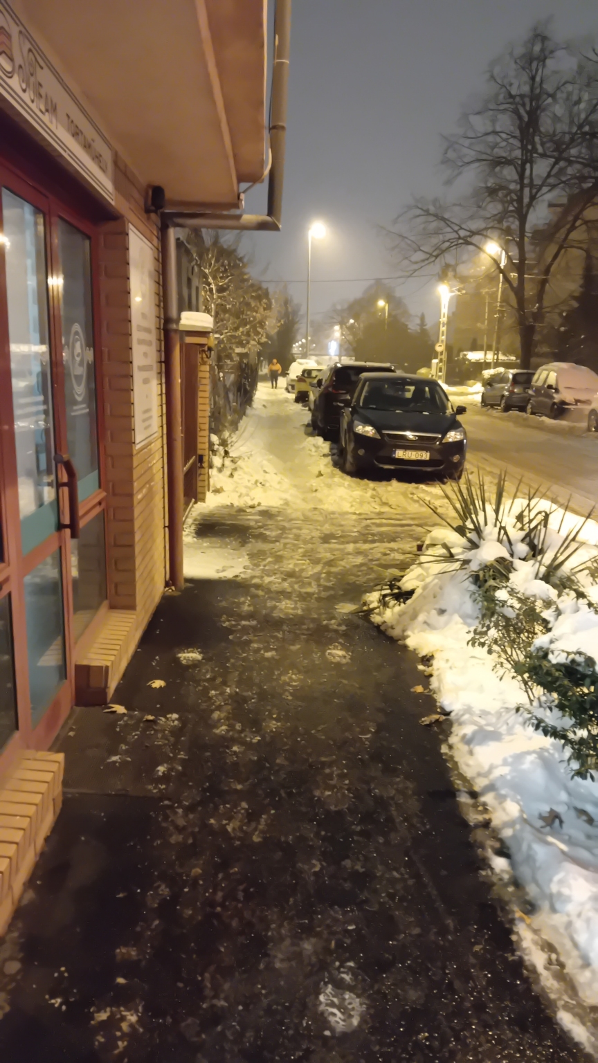 Ha minden igaz, ez egy önkormányzati telek, gonsolom akkor az önkormányzat feladata lenne a telek menti járdák sózása és lapátolása is.