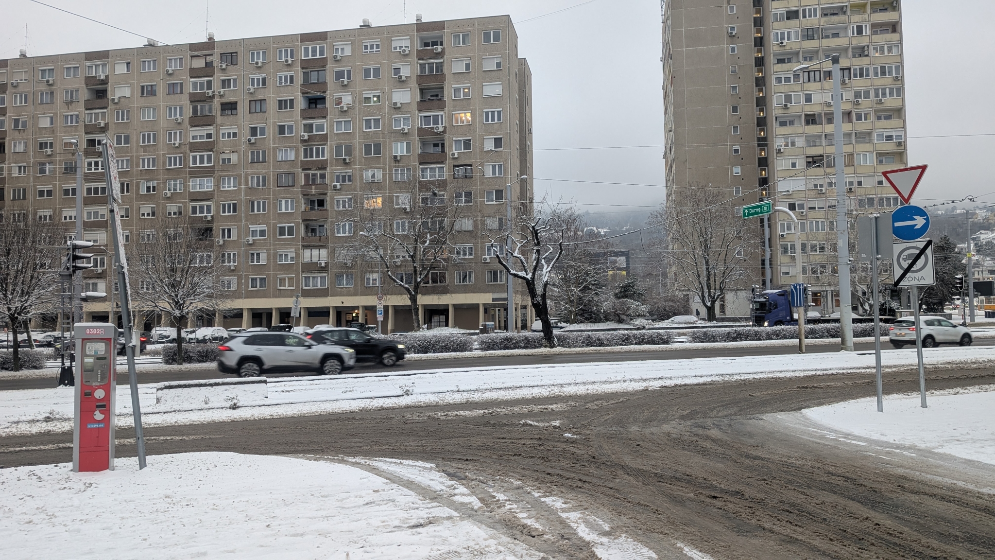 A Hévízi út - Vörösvári út (egyirányú szervizút) kereszteződésben nagyon úgy tűnik, hogy elfordult két jelzőtábla. Kérjük a helyszín megvizsgálását és a táblák helyes irányba fordítását.