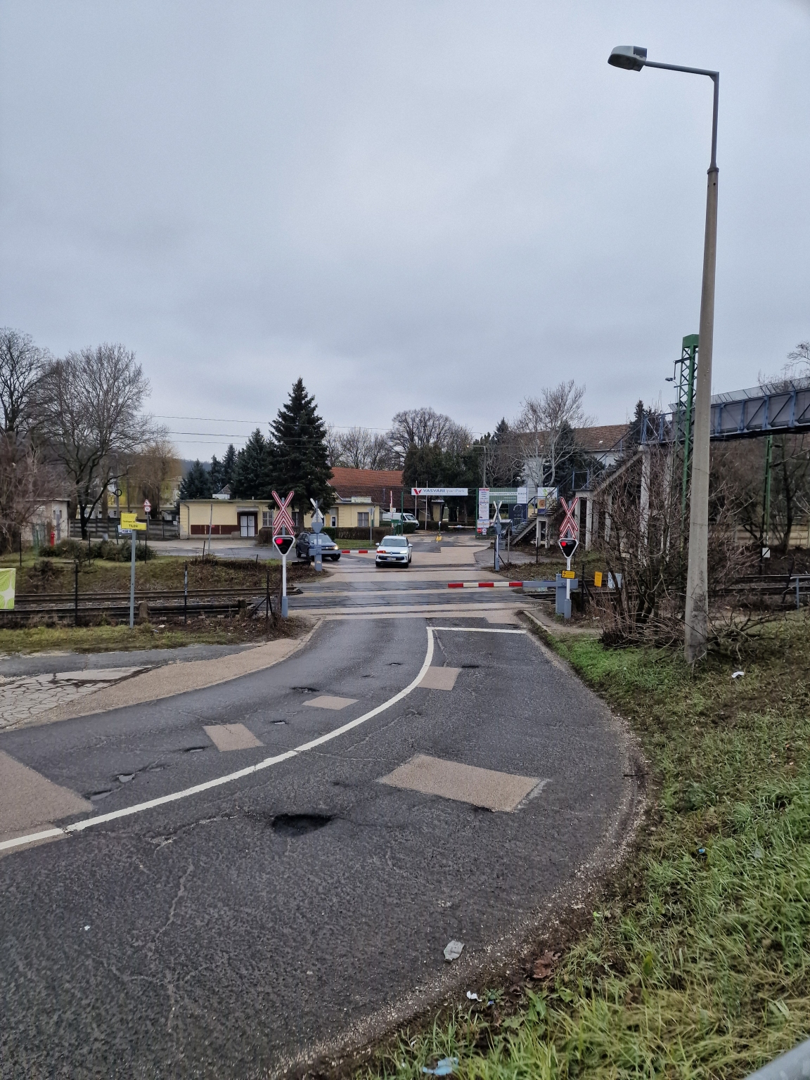 A Repülőtéri úton lévő vasúti átjárónál lévő kátyú megszüntetését szeretném kérni.