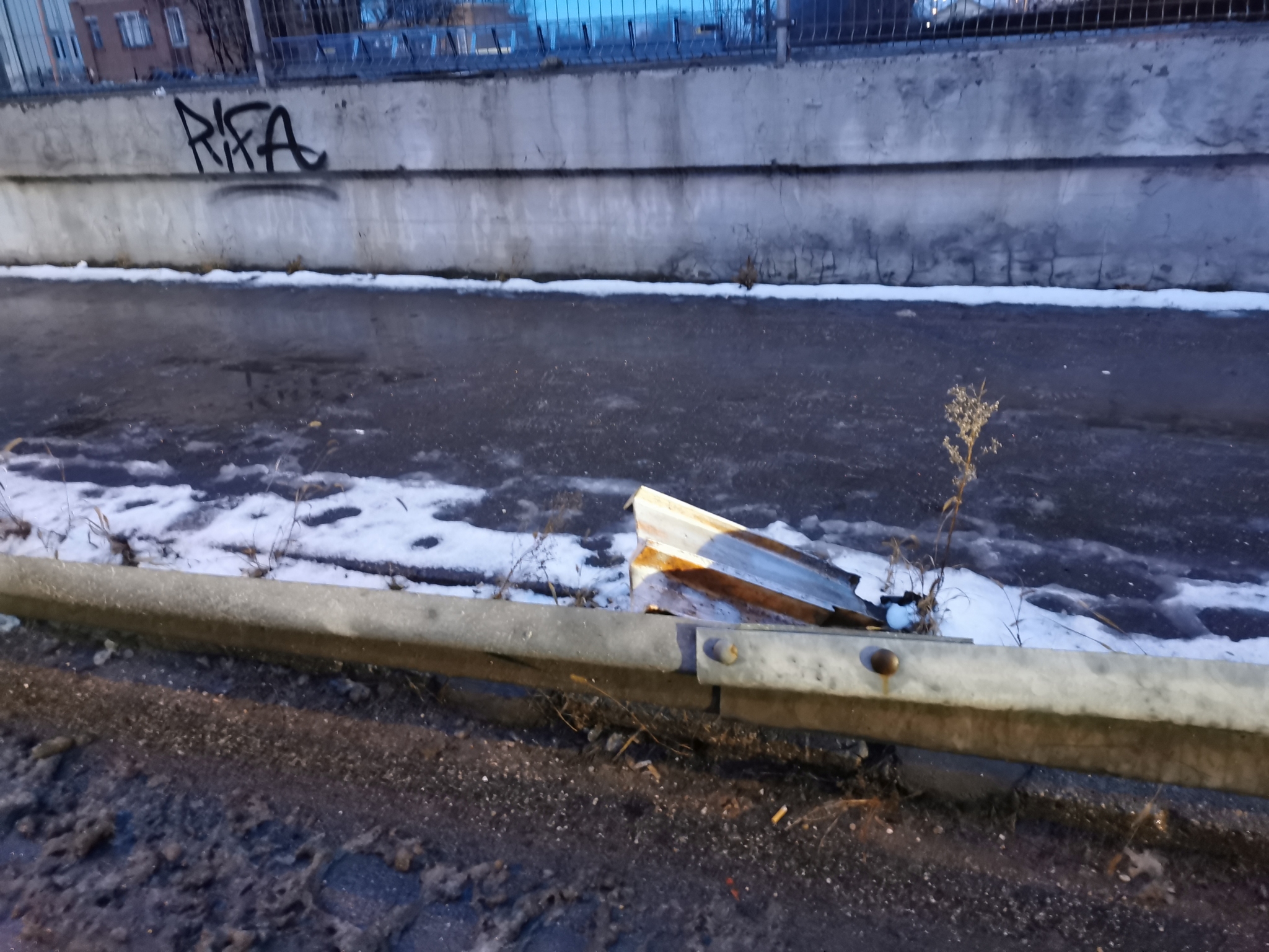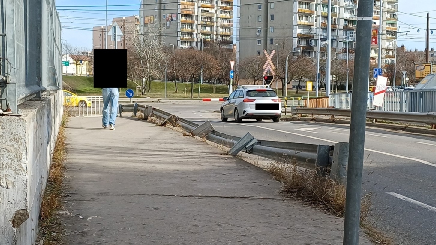A Csepeli átjárónál, a pesterzsébeti oldalon, a Hév sin után, a járdát az autó úttól elválasztó szalagkorlát kidőlt az autóút felé. Nem úgy tűnik mintha baleset történt volna, hanem elfáradhatott az anyag, mert szinte teljes hosszában kidőlt.