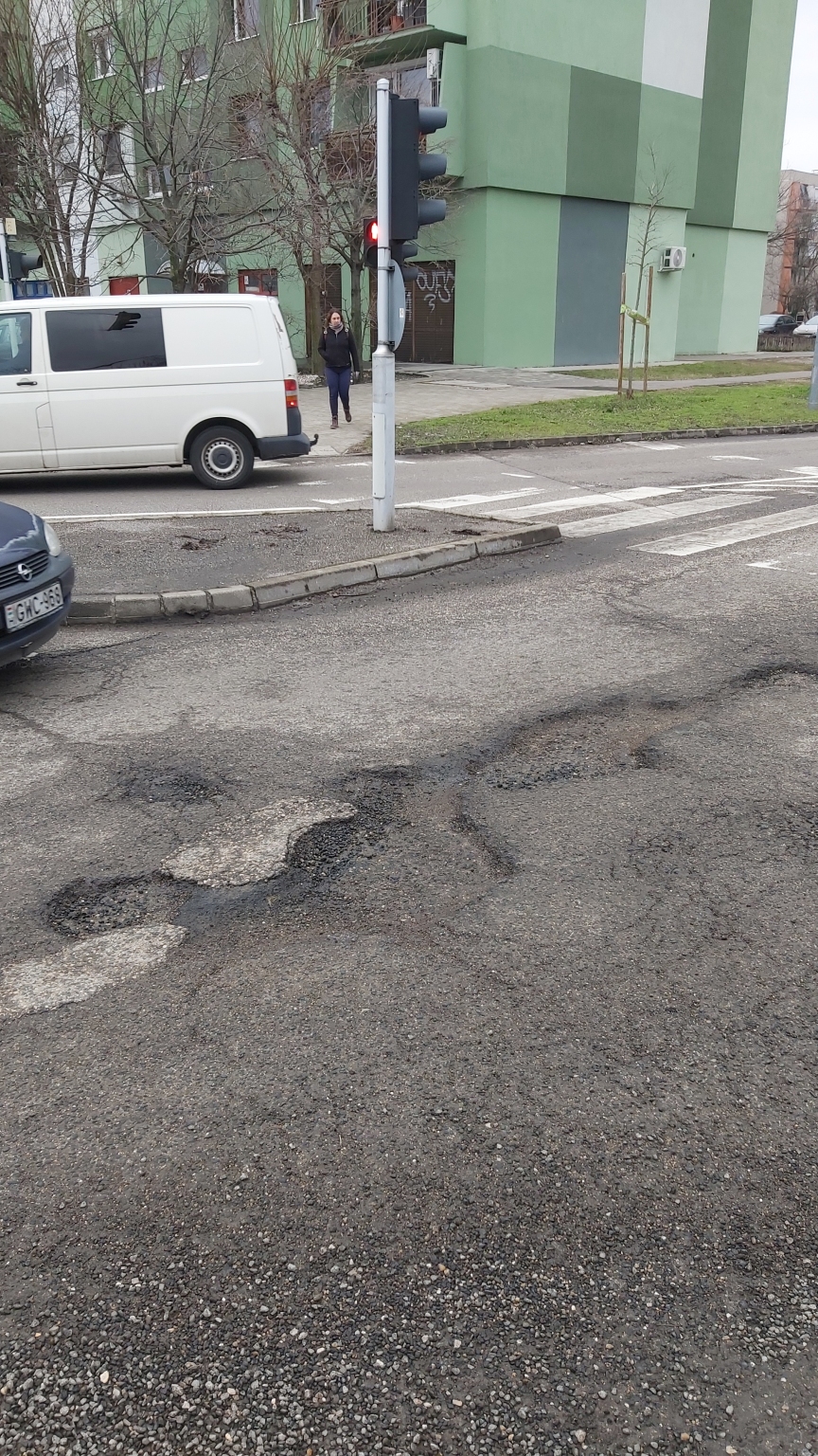 Üdvözlöm A fagy meghozta a hatását és a hosszú évek óta teljesen elhanyagolt utak számtalan helyen kirohadtak, hatalmas kátyúk keletkeztek. Csepelen kifejezetten kritikus a helyzet. Ugye meglehetősen speciális helyzetben van a kerület hiszen egy szigeten van. Tehát ha az egyik főút járhatatlanná válik nincs az, hogy kis utcákon átmegyek a következő főútra és úgy távozom mert nincs erre lehetőség. Szeretném ha első körben legalább betömnék a lyukakat következő körben pedig szükséges a teljes útburkolat cseréje. Amit lefotóztam az Csepel, 21. kerület, Kossuth Lajos utca és Erdősor utca kereszteződése. Ez egy rendkívül forgalmas főút csomópont és jelentős buszközlekedés is van rajta. Olyan mélyek a kátyúk hogy éppen hogy lépésben lehet csak áthaladni a kereszteződésen és helyenként 20 cm mélyen beledöcennek a kocsik a lyukakba és kerülni sem lehet ezen a szakaszon.