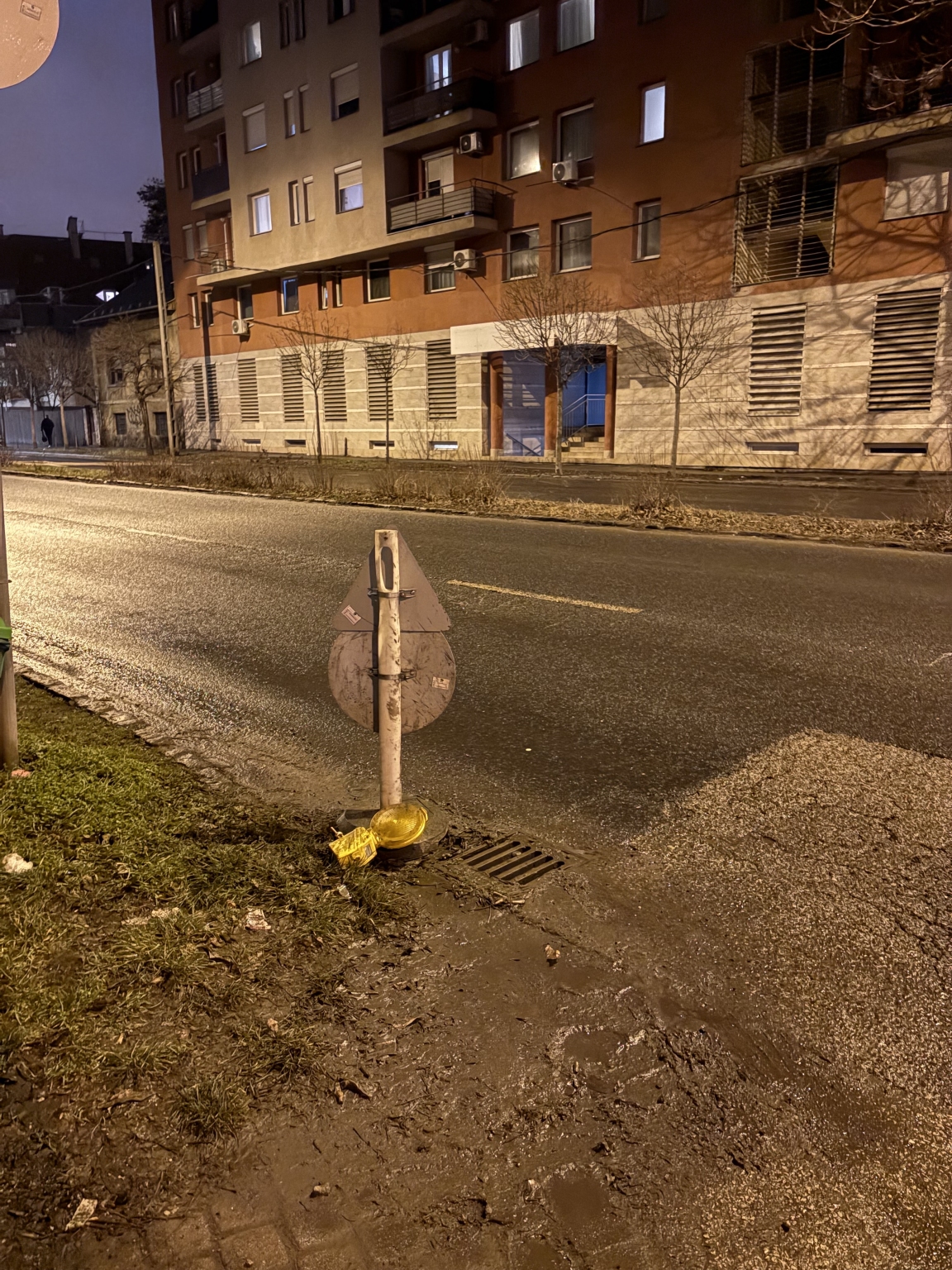 Kivilágítás nélkül az úton hagyott jelző