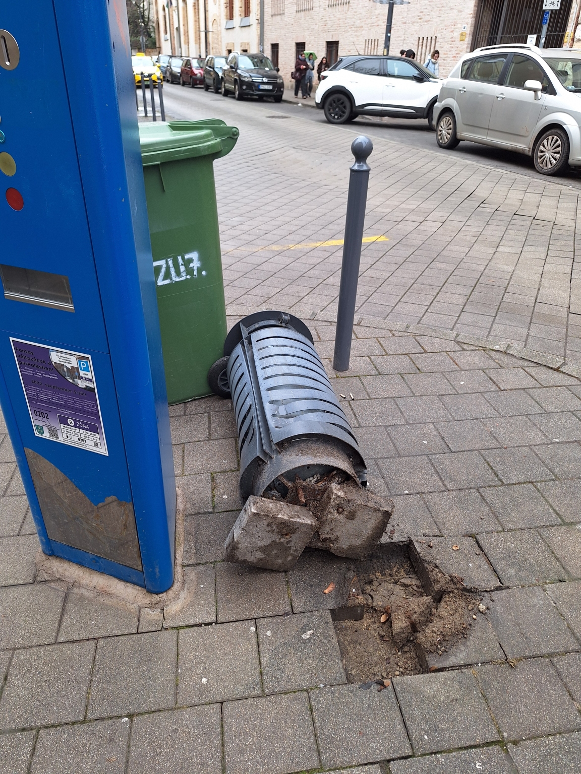 Úgy tűnik, parkolás közben kidöntöttek egy kukát.