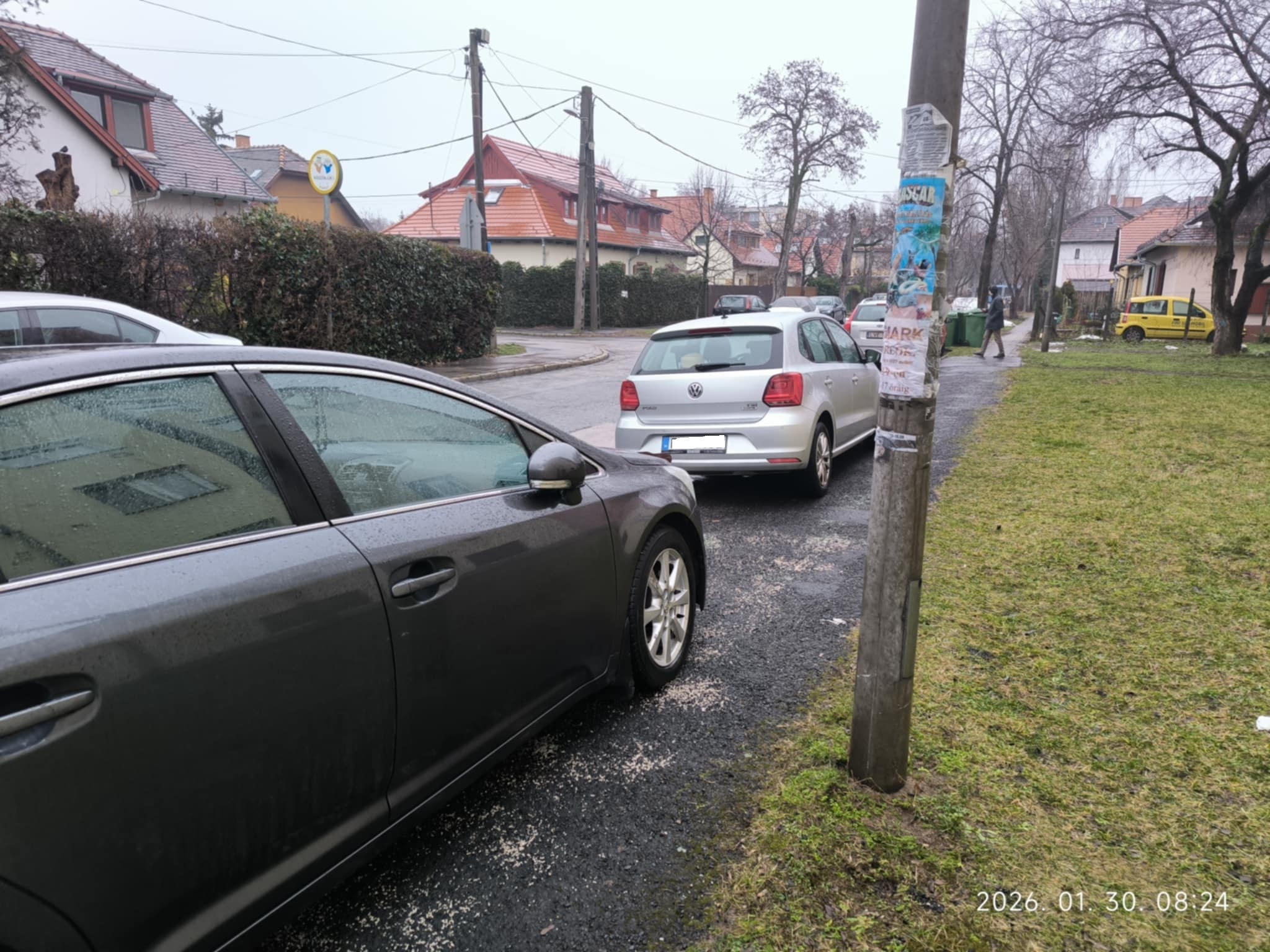 Szeretném kérni a segítségeteket, hogy jelezzétek az illetékes önkormányzat felé: sürgős forgalomtechnikai beavatkozásra, „Várakozni tilos” táblák kihelyezésére vagy útburkolati jelek felfestésére lenne szükség. Meg kell akadályozni, hogy az autósok szabálytalankodása miatt a gyalogosok a sárban bukdácsoljanak, vagy súlyos közúti balesetek történjenek.