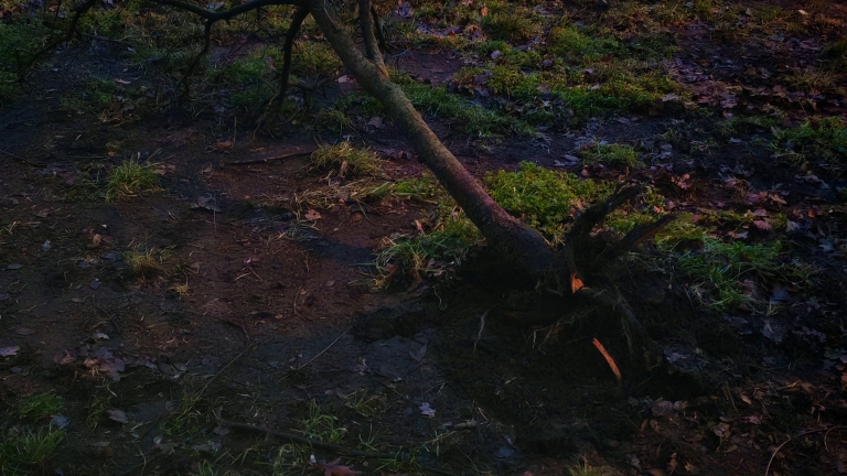 Emberi kéz által kidöntött kis fa.