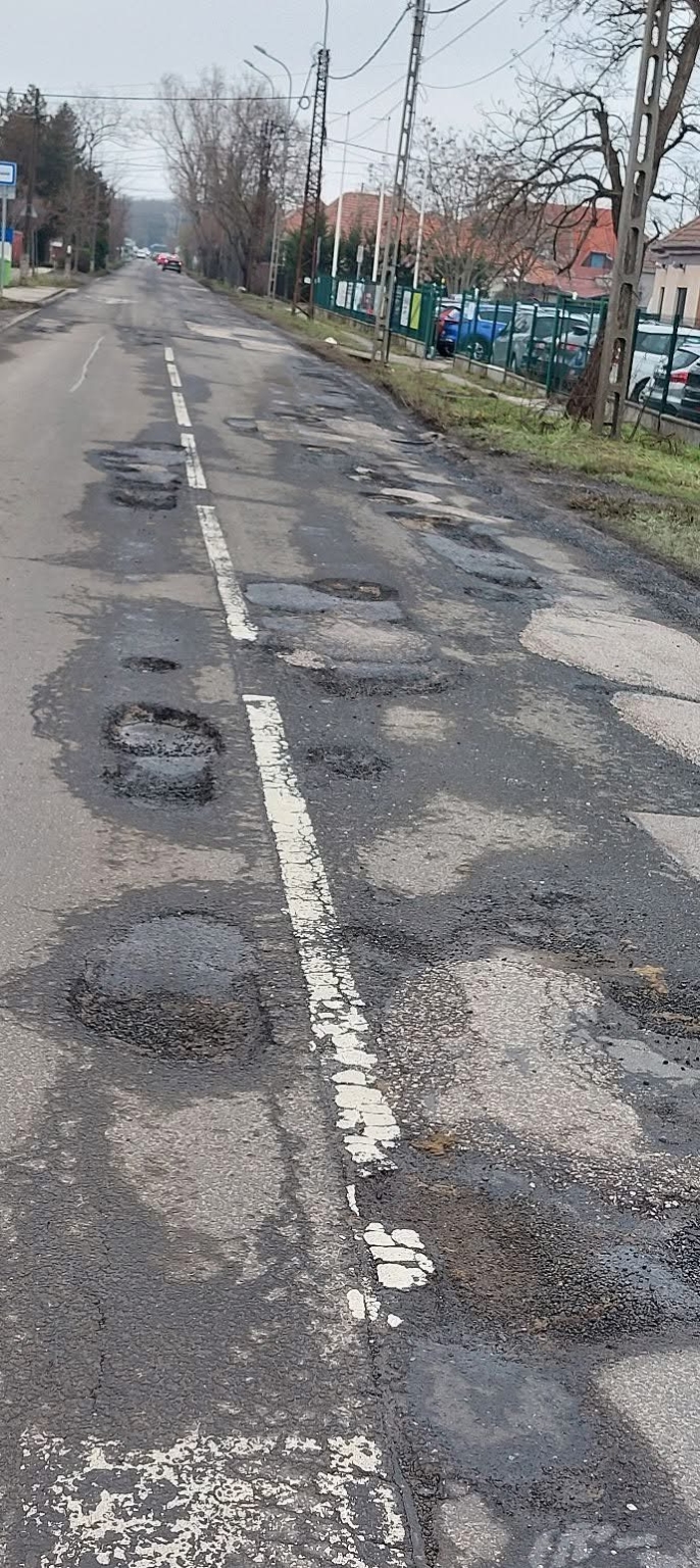Budapest 16. kerület György utca úttest 90%-a annyira kátyús, hogy maximumon 20km/h sebességgel lehet rajta haladni. Fontos lenne megjavítani, mert több buszjárat is ezen az útszakaszon közlekedik!