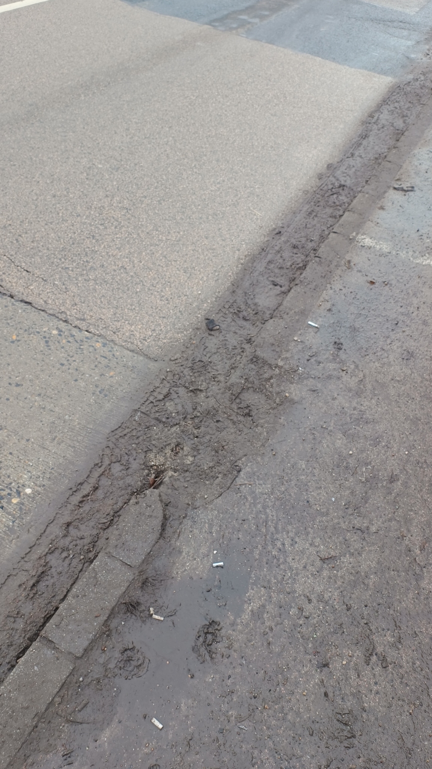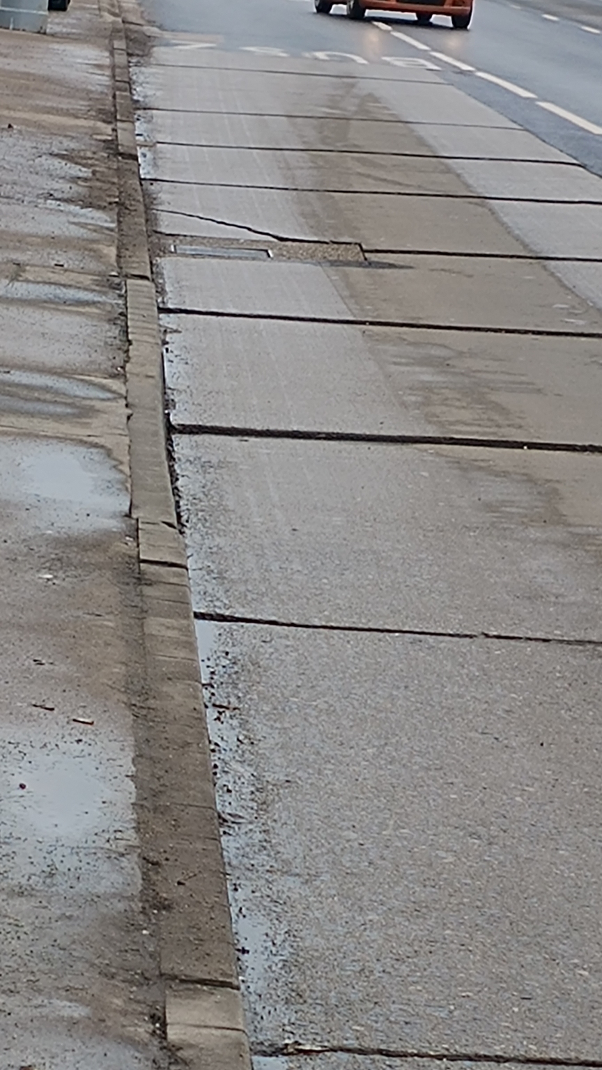 Tönkre ment burkolat a buszmegállóban