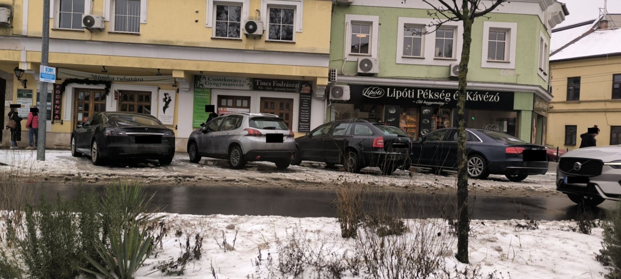 Egyértelmű a helyzet ami a parkolást illeti... de a jogosítvánnyal rendelkező járművezetőket ez nem hatja meg. Van kialakítva 5 parkolóhely, előtte a járdán megállást semmilyen tábla, felfestés nem engedi. Mostanában már teljesen állandósult, hogy itt végig mégis gépkocsik parkolnak. Kérem, kerékbilinccsel és/vagy elszállítással lépjenek fel a szabálytalankodókkal szemben!