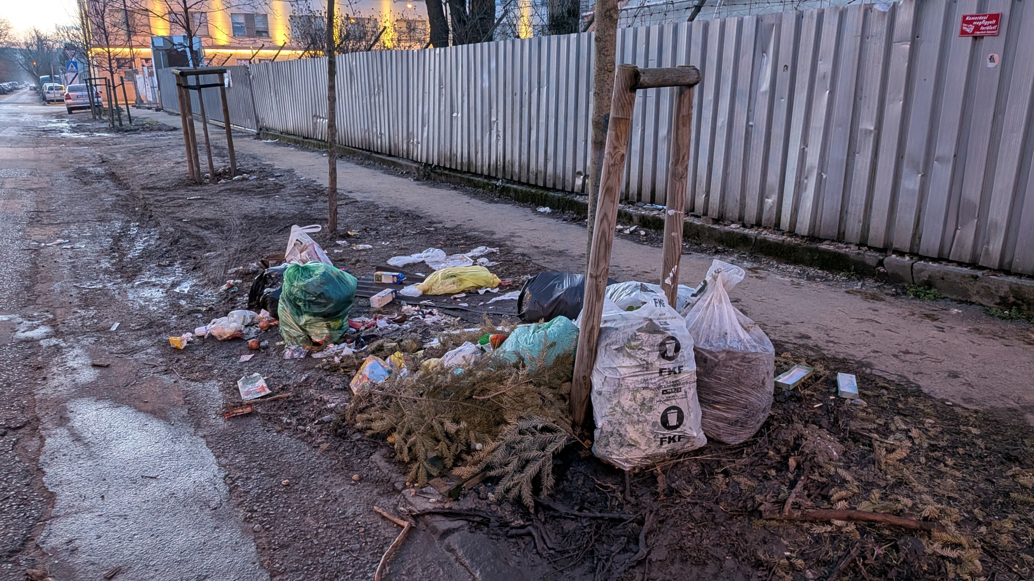 Folyamatosan újratermelődő szeméthalom a XIV. kerület Kassai utca, Fűrész utca kereszteződésében.