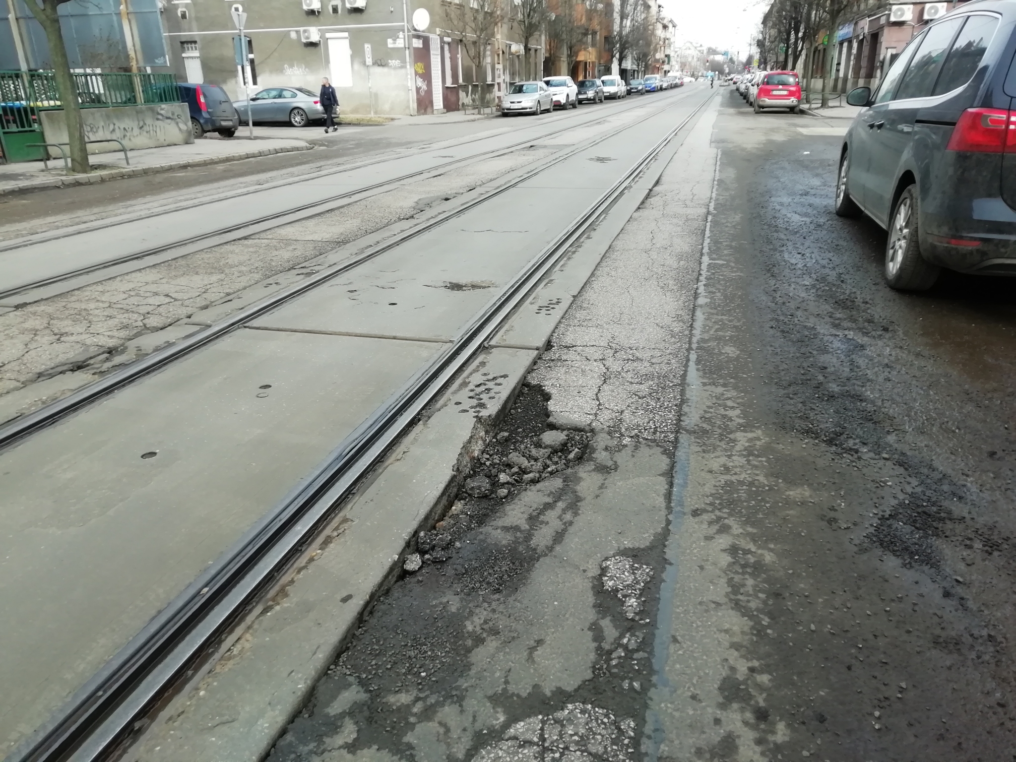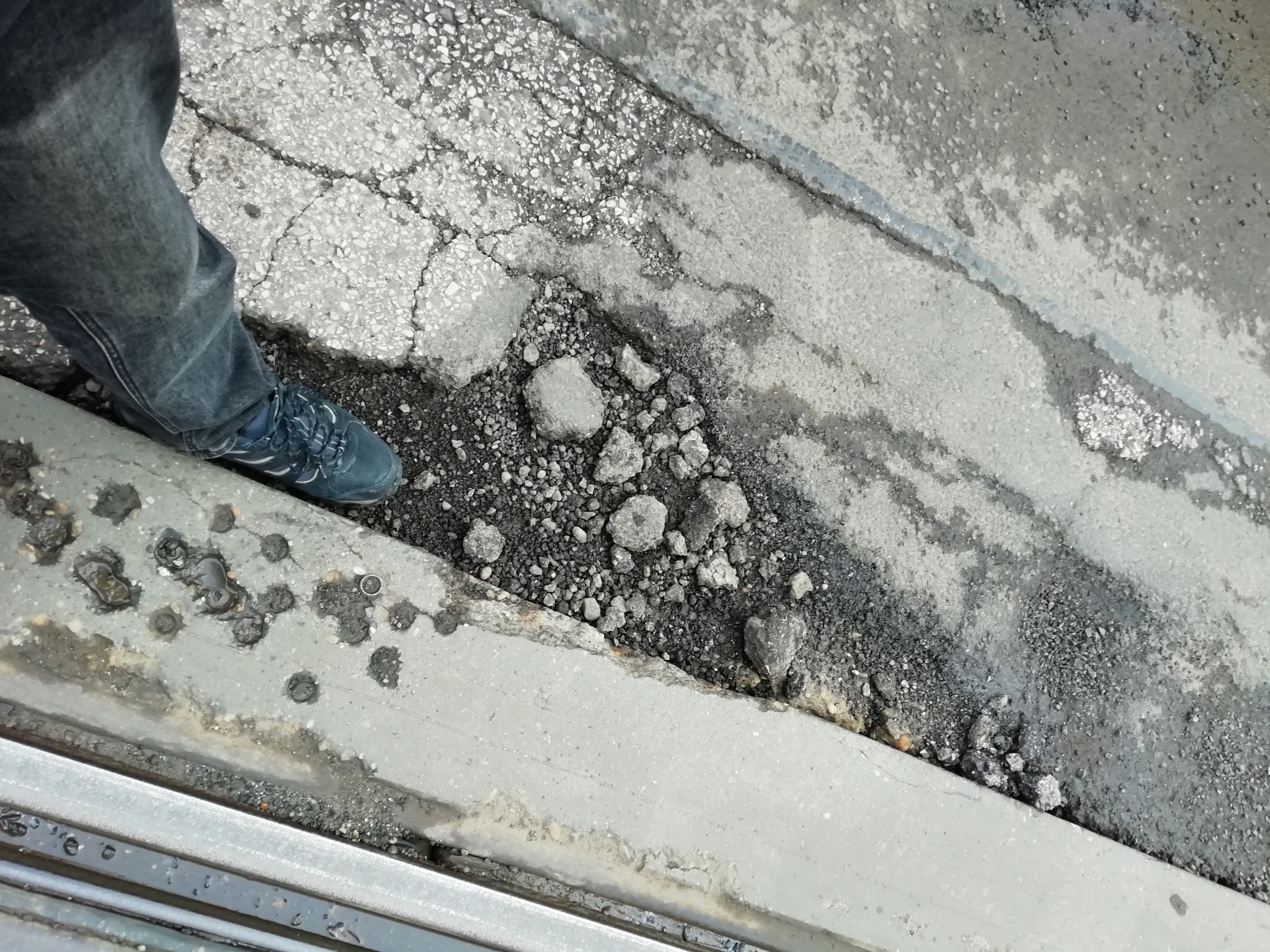 A jobb keréknyomban 8 cm mély, balesetveszélyes kátyú