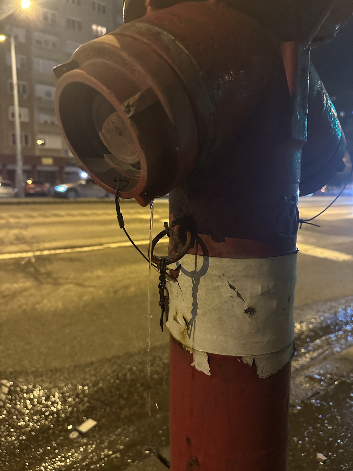Budapesten a 3. Kerületben a Bécsi út, Perényi út sarkán lévő tűzcsapból folyamatosan folydogál a víz. Nem csepegés hanem folyás