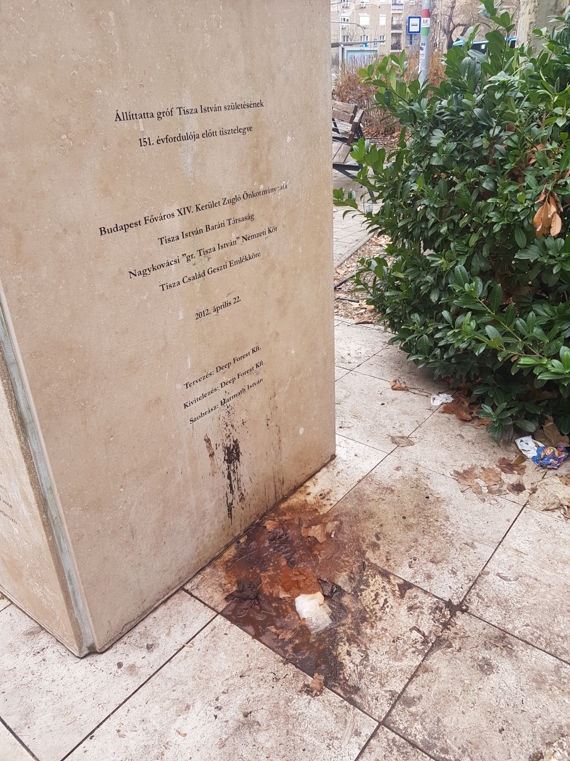Tisza István téren a szobor mögött emberi székletek.