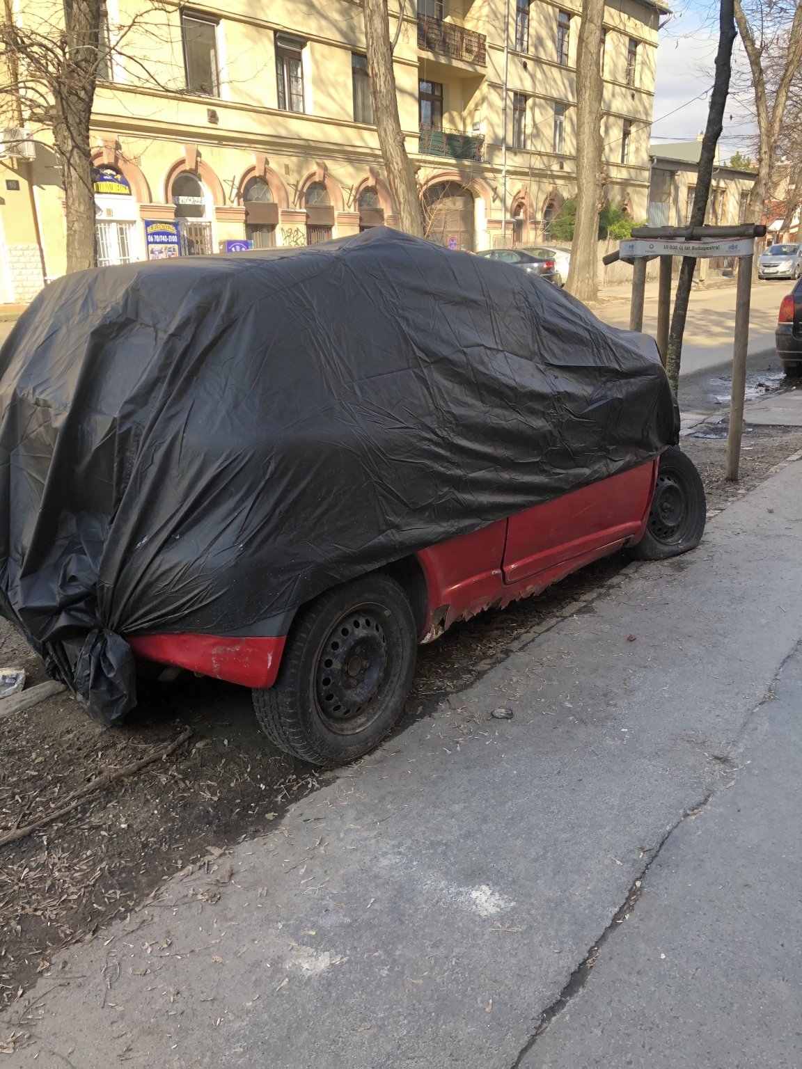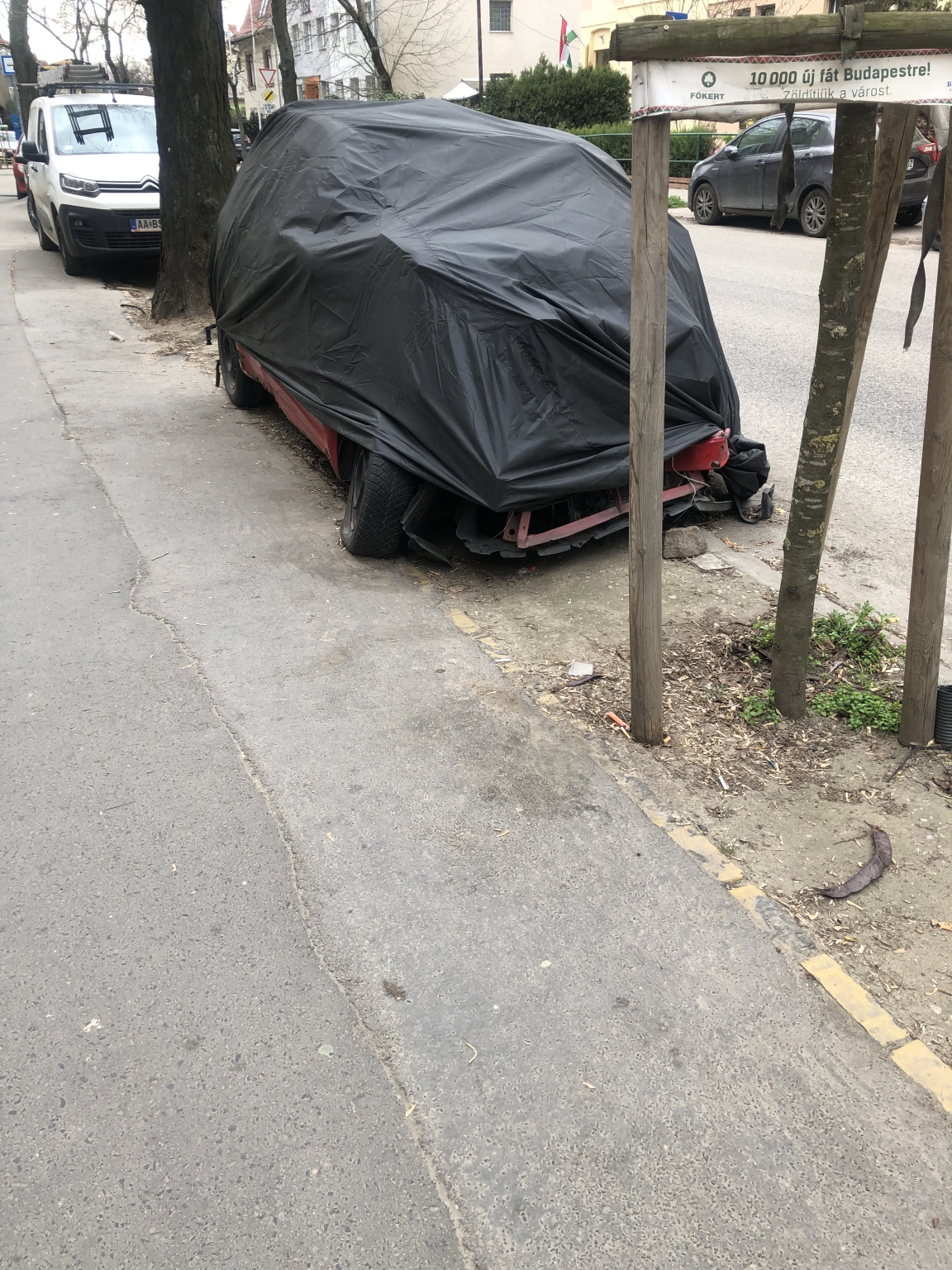 Zugló, Telepes utca 5.sz ház előtt hónapok óta letakarva áll egy törött, roncs autó fizetős parkoló helyen, ott ahol egyébként is kevés a hely. Minden ittlakó fizeti az éves díjat és egyre kevesebb a hely, ahova tud állni. Az itteni parkoló őr szerint már szóltak az illetékeseknek (oktoberben? novemberben?) de semmi nem történik. Utánajárnának a problémának? Nagyon köszönöm!!