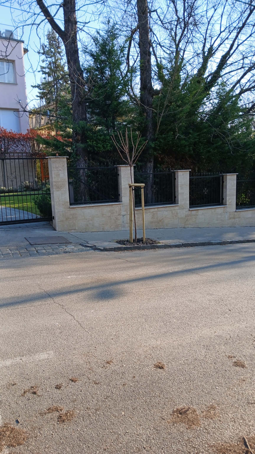 II kerület Eszter utca 9 előtt egy üres fahely van.