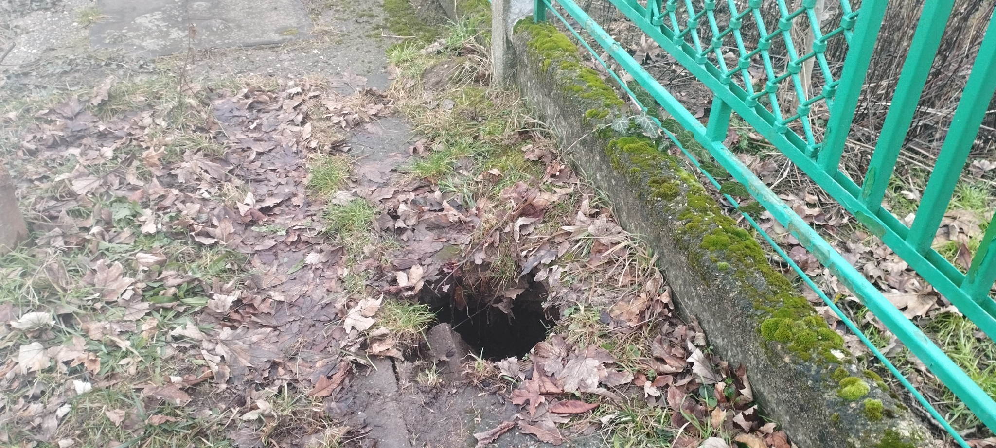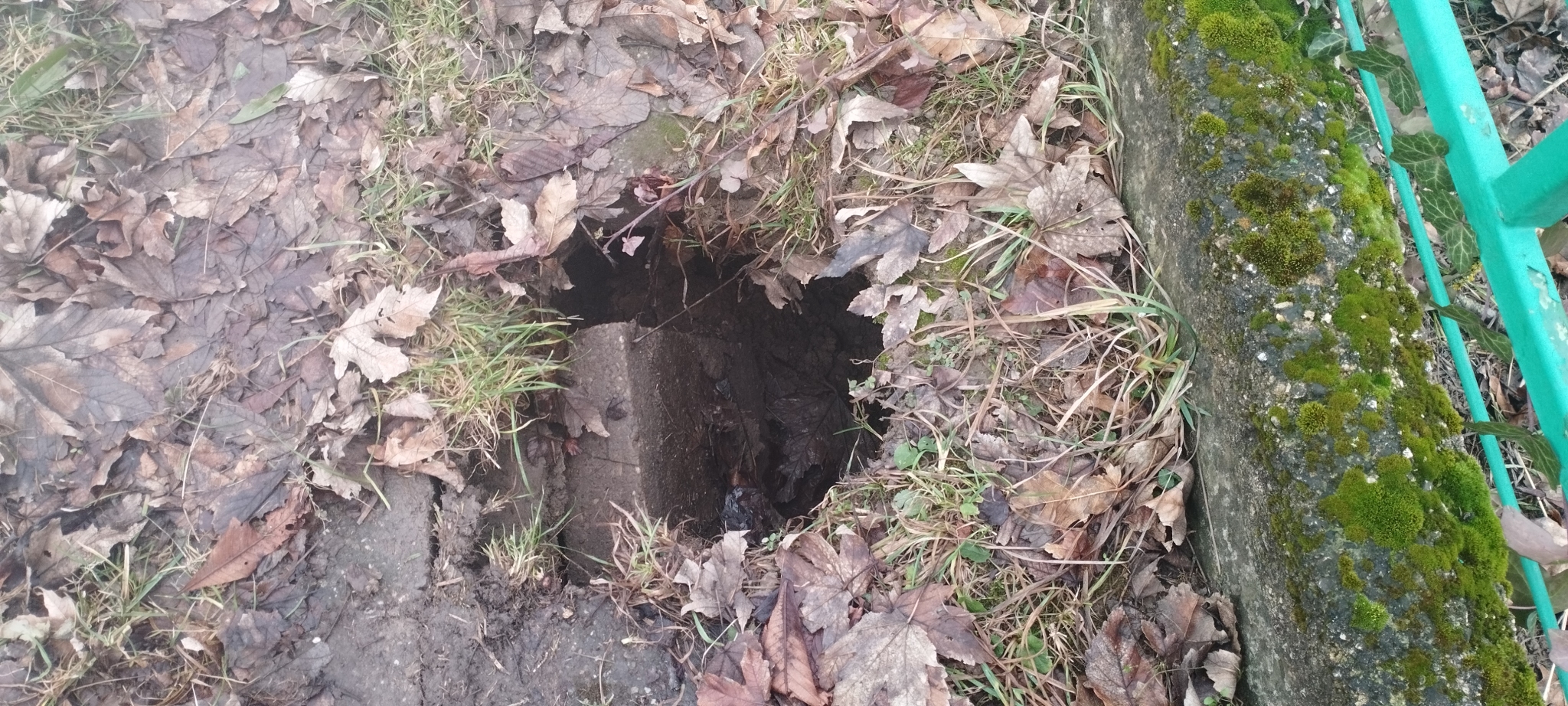 Beszakadt a járda, kb fél méteres a luk. Alatta vízvezeték és Telekomos kábel van. Nagyon veszélyes! FCSM-nek be lett jelentve, de nem kapunk választ tőlük. A térkép rosszul jelöli, de a Várhegy utca 23-as szám előtt található.