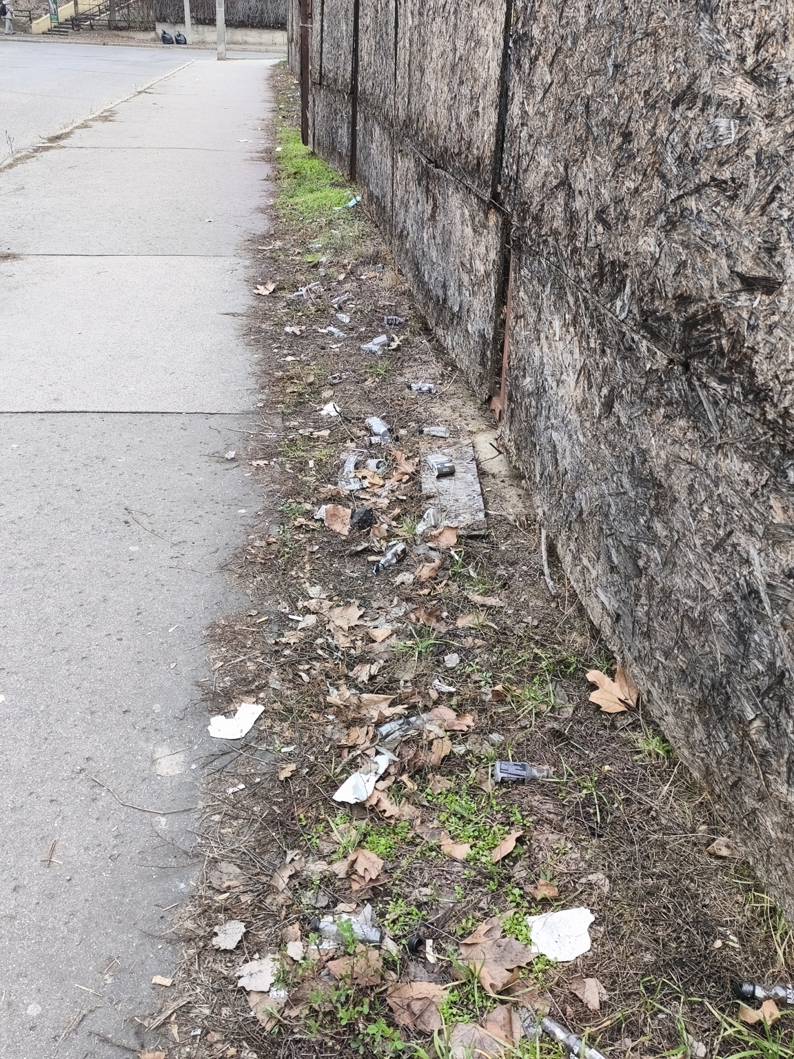 A XX. Kerületben, a baptista templom és az Interspar közötti foghíjtelek melletti kerítés mentén végig áll a szemét.