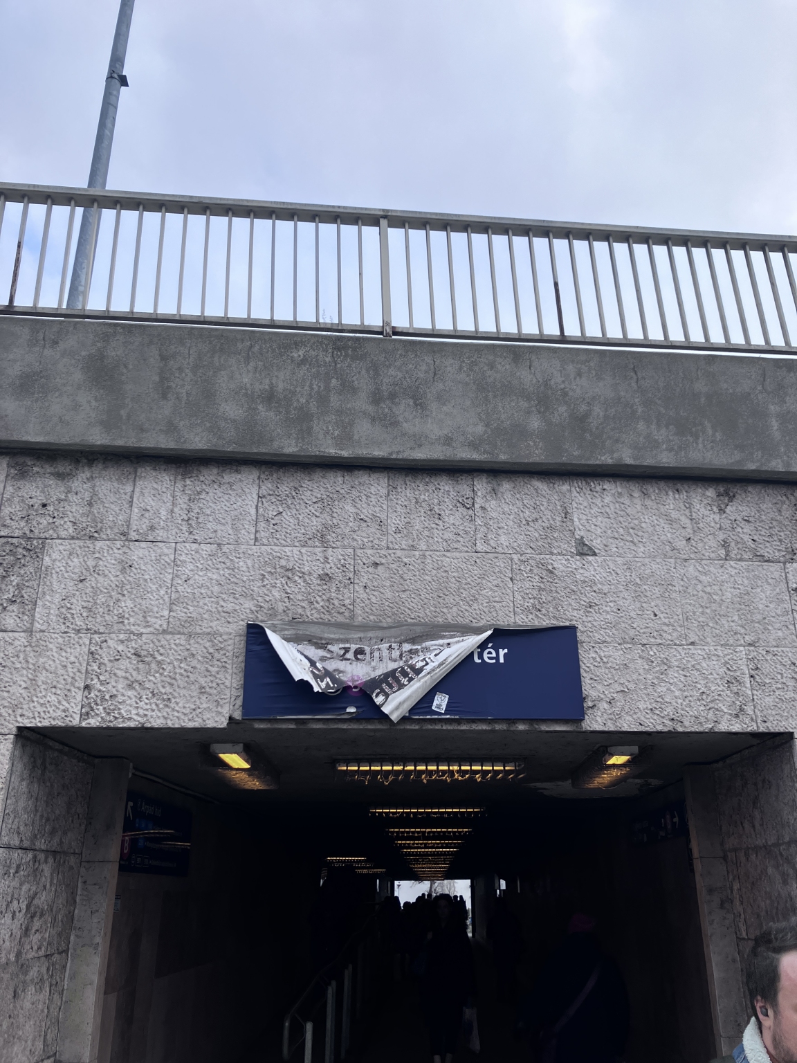 Az átjáró Serfőző utcai oldalán leszakadt a tájékoztató.