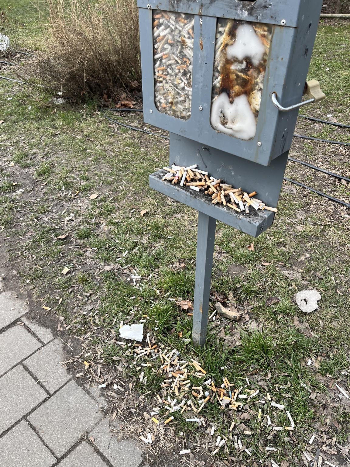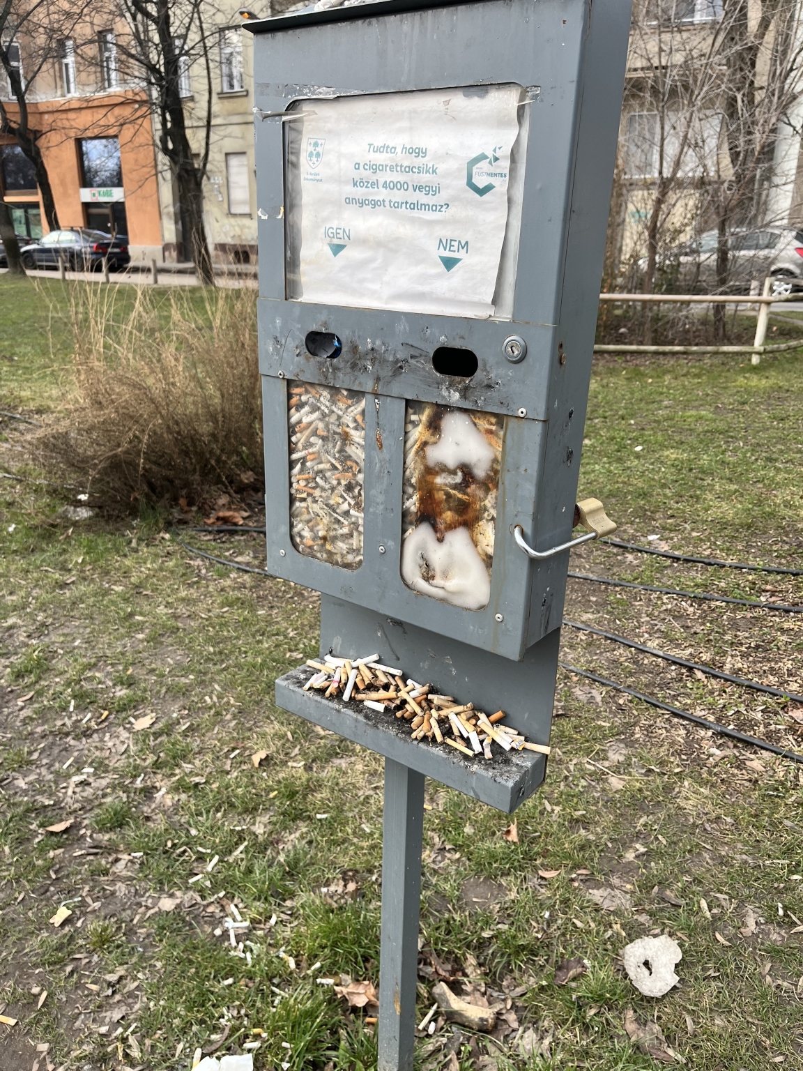 Nincsen kiűrítve a csikktartó a zsigmond téri villamosmegállóban.