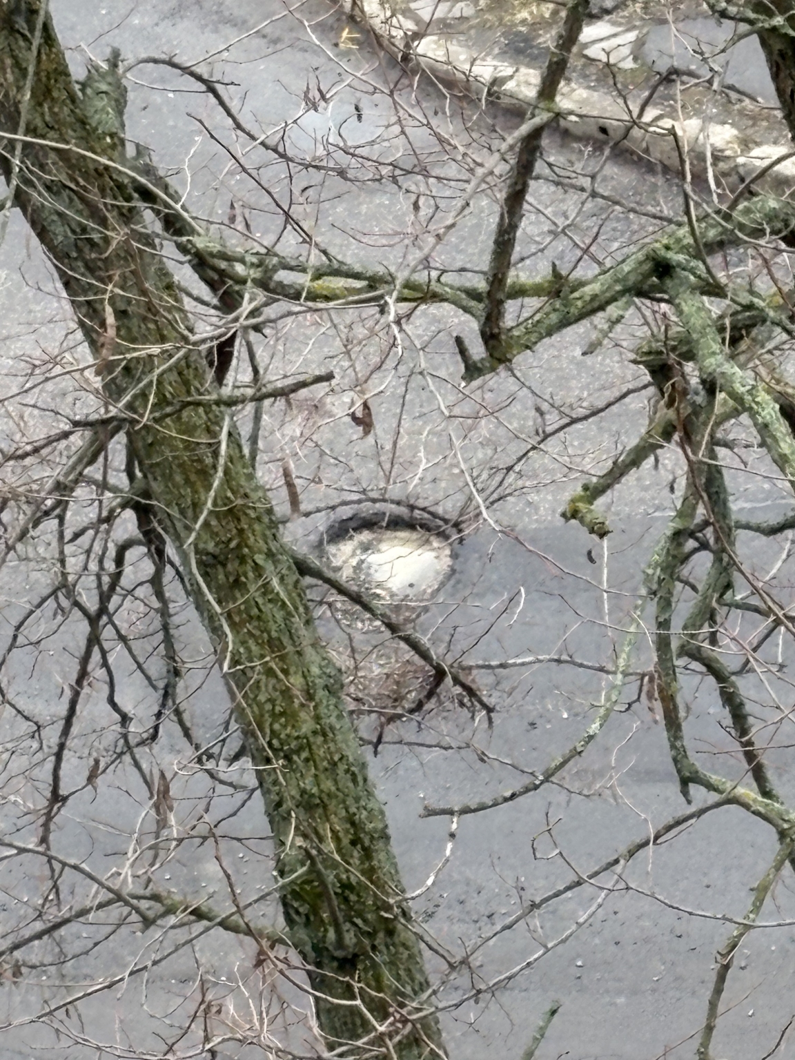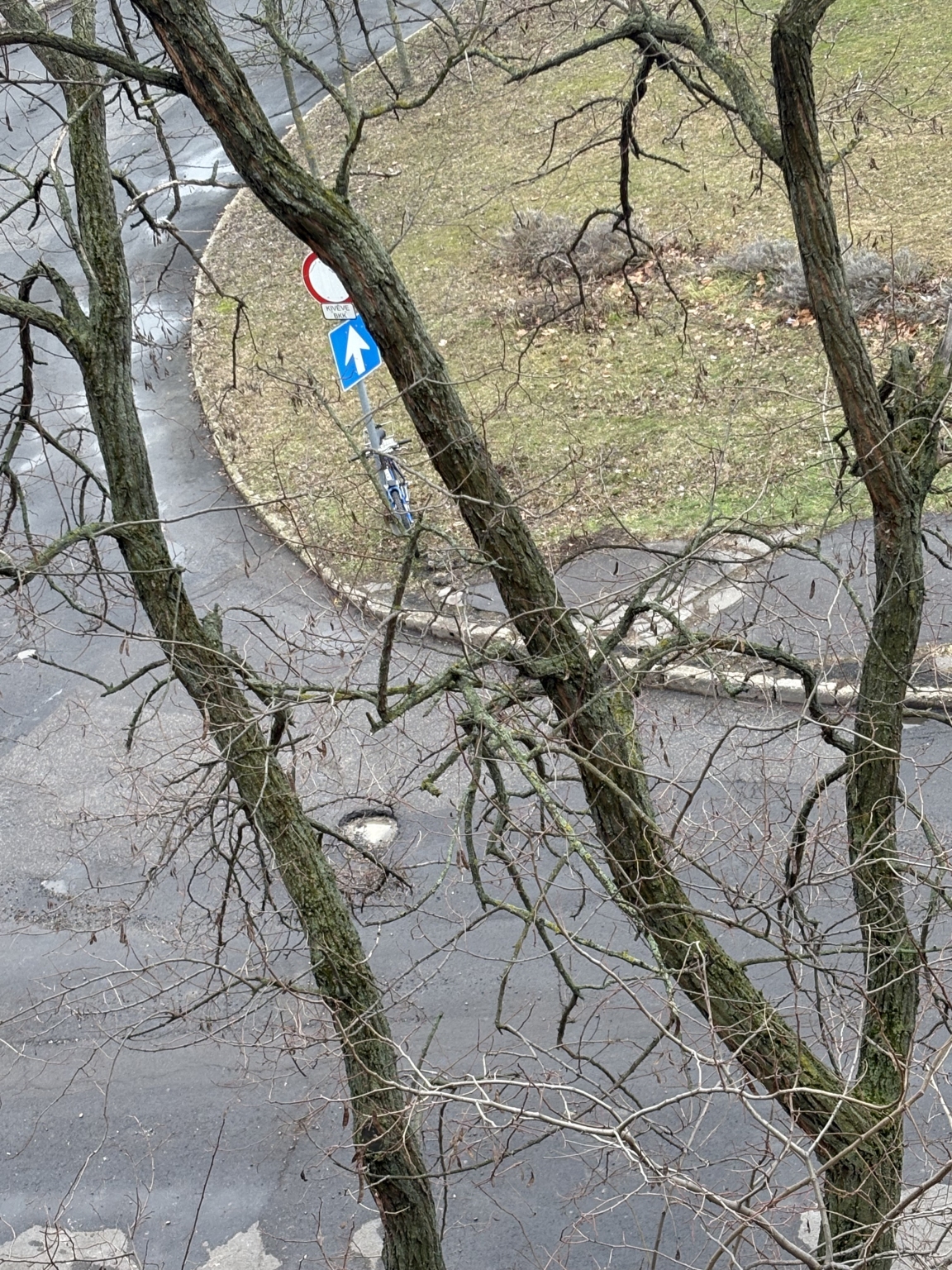 Körülbelül 30 centi sugarú, 15-20 centi mely kátyú az út közepén